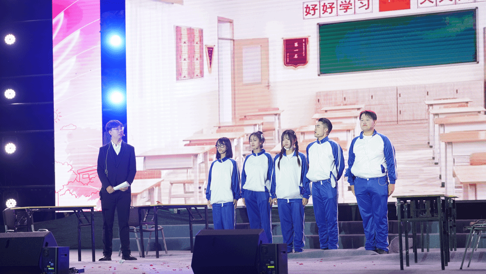 晚会还设置了特殊环节,现场通过视频的方式带新生们重温为期十四天的军训。主持人现场朗读了教官们亲笔写给新生的寄语,字字真情,现场氛围十分温馨。在节目《披荆斩棘的辅导员》中,辅导员们身着金色服饰,跳着俏皮可爱的流行舞蹈,引起现场观众阵阵爆笑。辅导员和学长班主任们鼓励同学们好好学习,并为同学们送上了祝福。