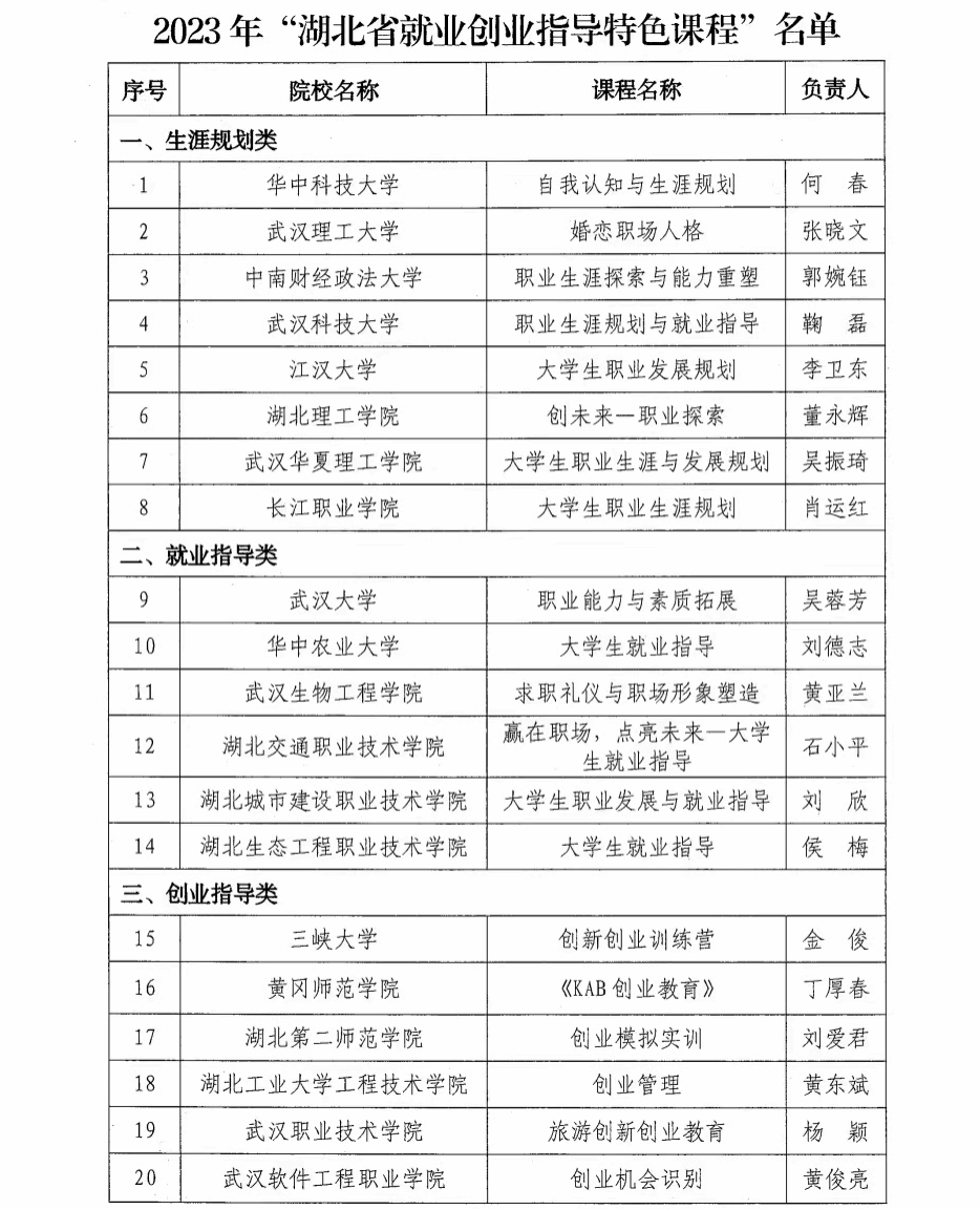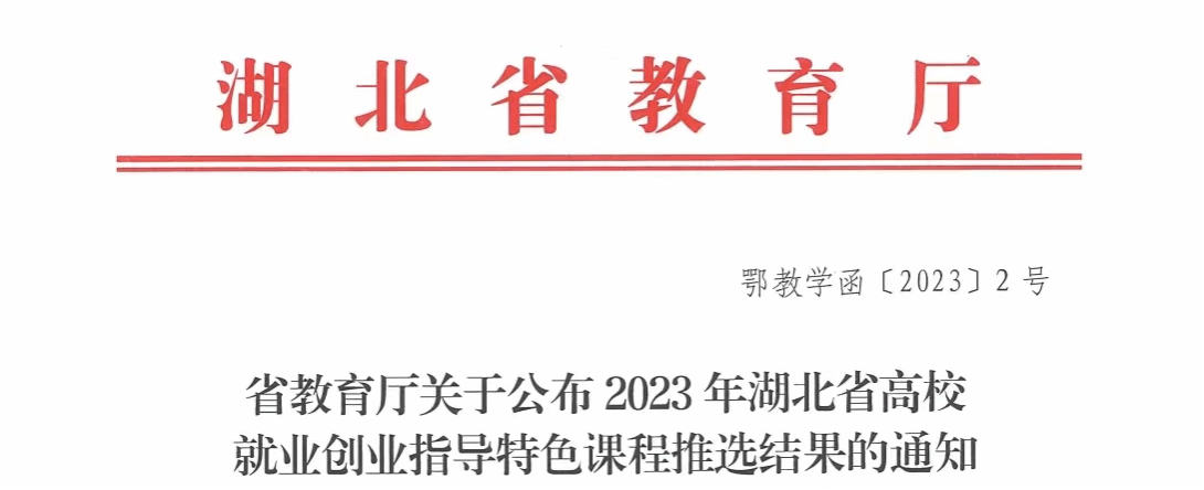 近日,湖北省教育厅公布2023年湖北省就业创业指导特色课程推选结果,我校《大学生职业生涯与发展规划》课程成功获批。