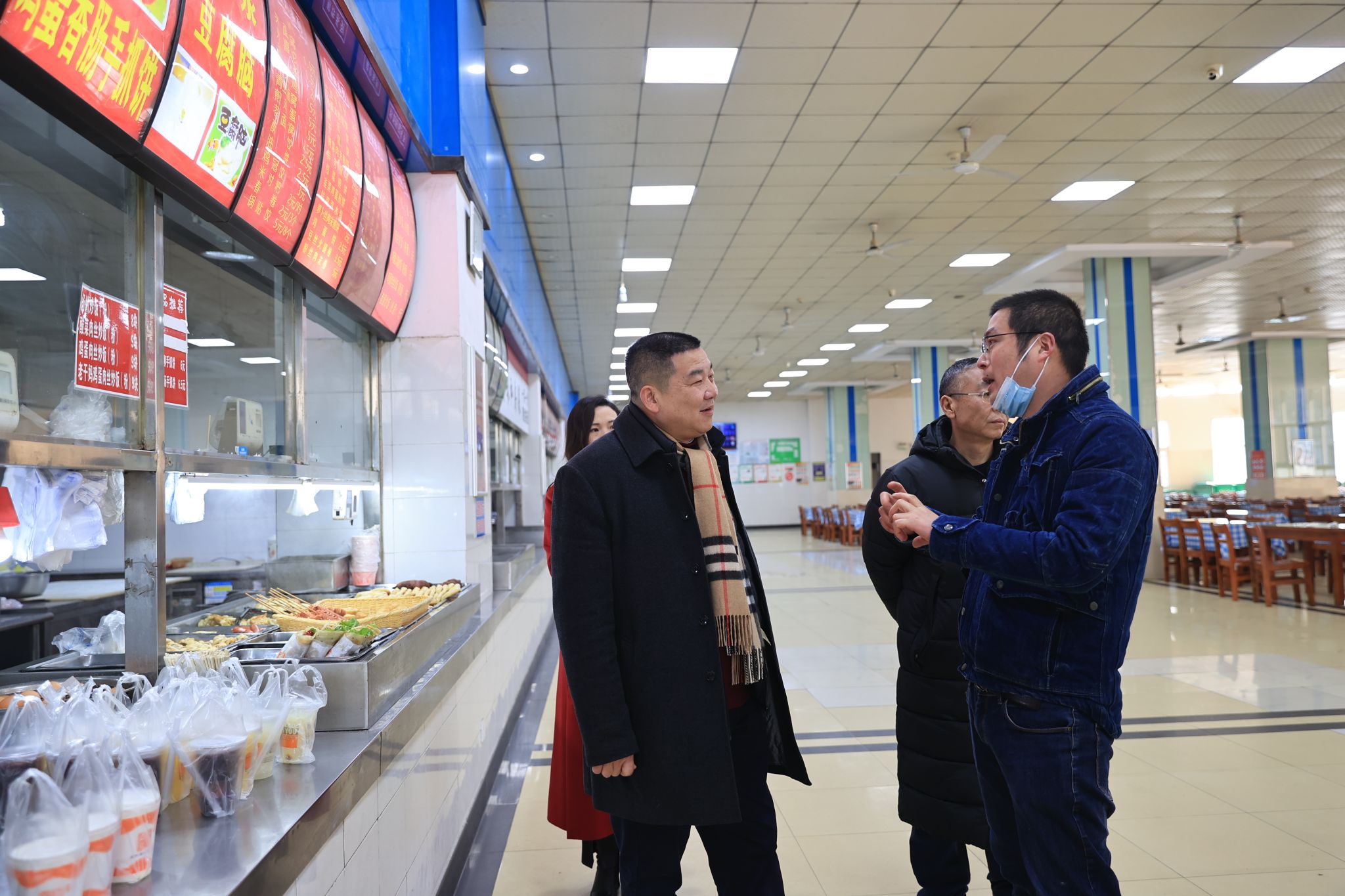随后,校领导分批走访实验楼、食堂、辅导员社区等重点场所。在保卫工作部,吴永桥对教职工春节期间克服极寒天气,加班加点检查维修教学设施,落实校园安全防控举措,全力护航新学期顺利开学的做法给予了充分肯定。