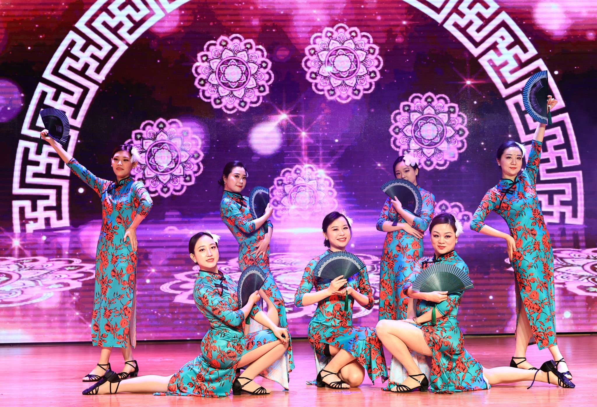 “金风玉露一相逢,便胜却人间无数......”外国语学院舞蹈《金风玉露》,将舞台穿越至缠绵柔情的水墨江南。女教师们衣着墨绿旗袍、头戴发簪,优雅端庄登场。优美的旋律声渐起,女教师们翩翩起舞。曼妙的身姿,轻快的舞姿,尽展女性柔美气质。