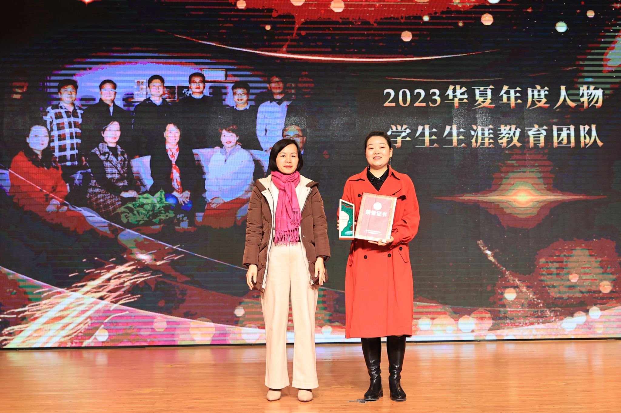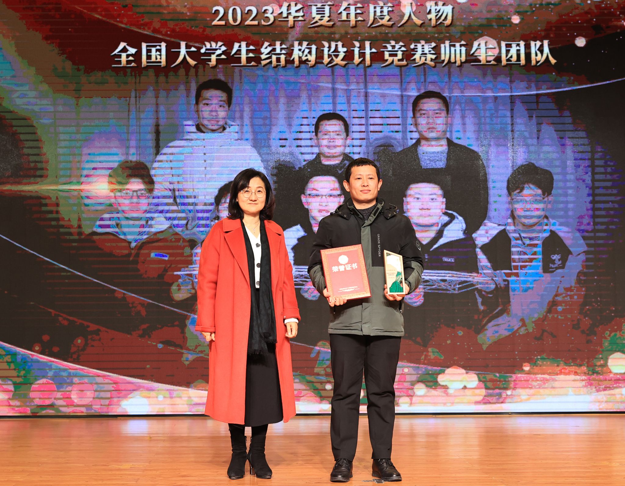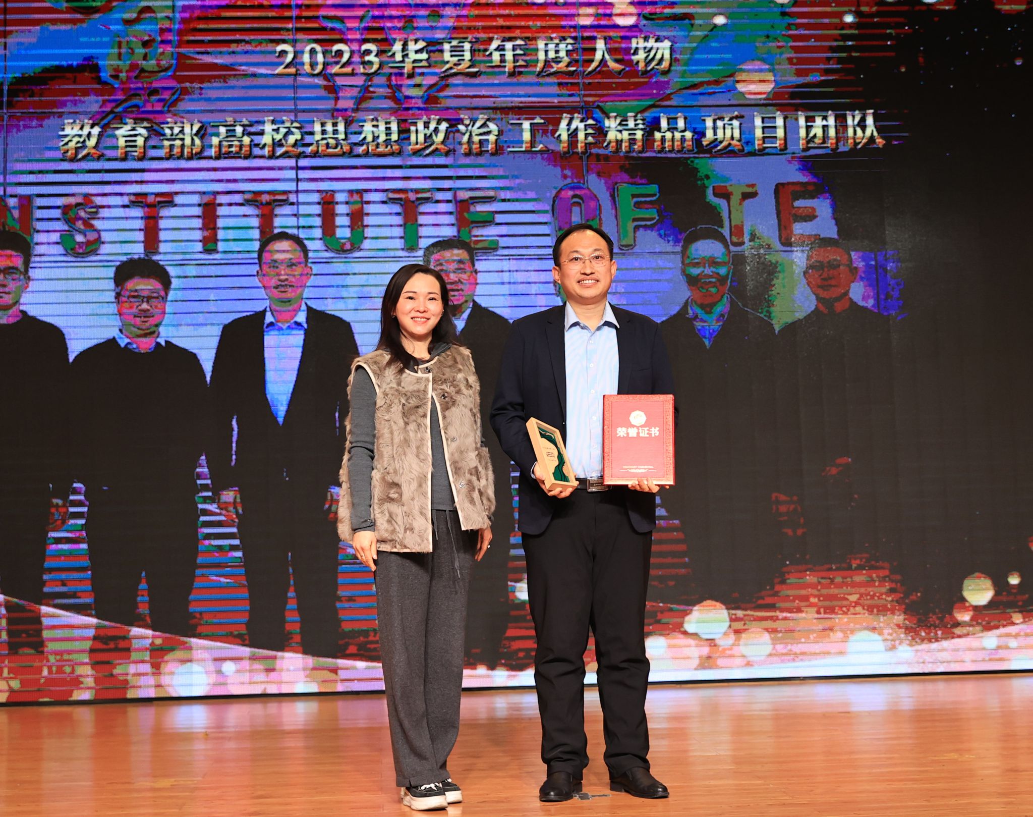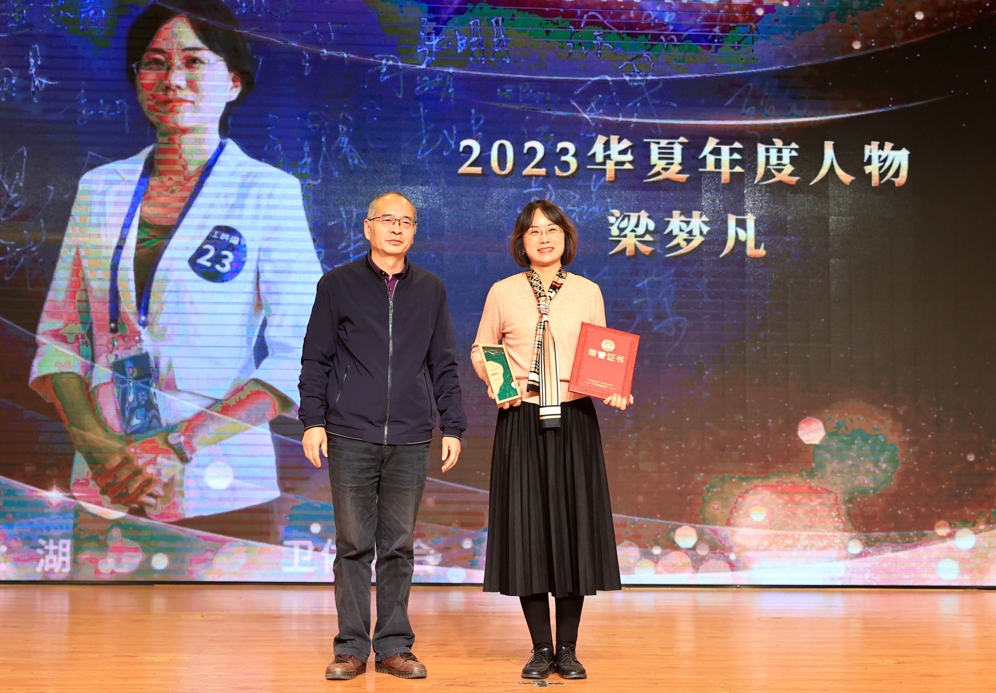 大会隆重揭晓了2023华夏年度人物。湖北省心理健康教育示范中心团队、学生生涯教育团队、教育部高校思想政治工作精品项目团队、新能源汽车动力系统技术团队、智能护理竞赛师生团队、全国大学生结构设计竞赛师生团队、艺术设计与传媒学院分工会、生物与制药工程学院教工第二党支部、信息工程学院教师梁梦凡、艺术设计与传媒学院教师姚田、艺术设计与传媒学院辅导员陈军获评“2023华夏年度人物”荣誉称号。现场播放了视频短片、颁奖词,生动展示了获奖团队及个人笃行致远、惟实励新的先进事迹和奋斗精神。校领导分别为获奖团队及个人颁发奖杯、证书。
