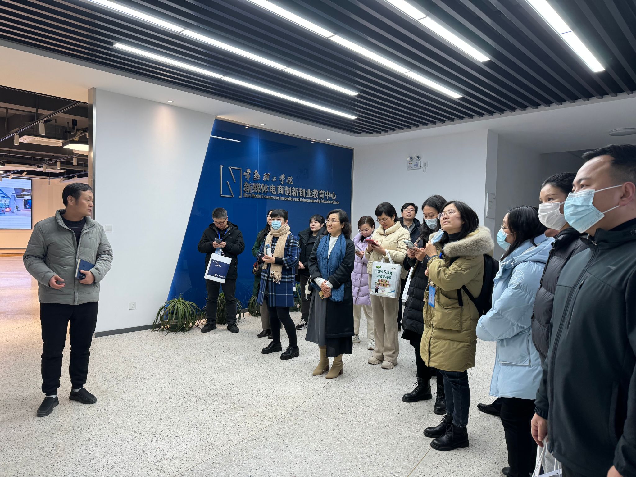 考察学习环节,我校研修班教师实地考察了国家级现代产业学院——光伏科技学院和教育部产教融合应用型人才培养实训中心等,对该校纺织与服装工程产业学院、电商产业学院、汽车工程学院、“双创+”融合平台等实验实训平台的建设与管理做了详细了解。