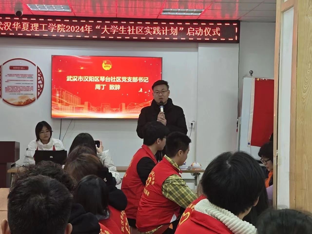 为弘扬雷锋精神,展现文明实践成果,3月4日,在全国第61个“学雷锋纪念日”及第25个“中国青年志愿者服务日”到来之际,校团委在武汉市汉阳区琴台社区举行2024年“学雷锋志愿服务月”活动暨“大学生社区实践计划”启动仪式。琴台社区党支部书记周丁,我校团委书记张勇,琴台社区工作人员、社区老人,我校各学院团总支书记及青年志愿者代表参加。活动由学校团委副书记史贵鹏主持。