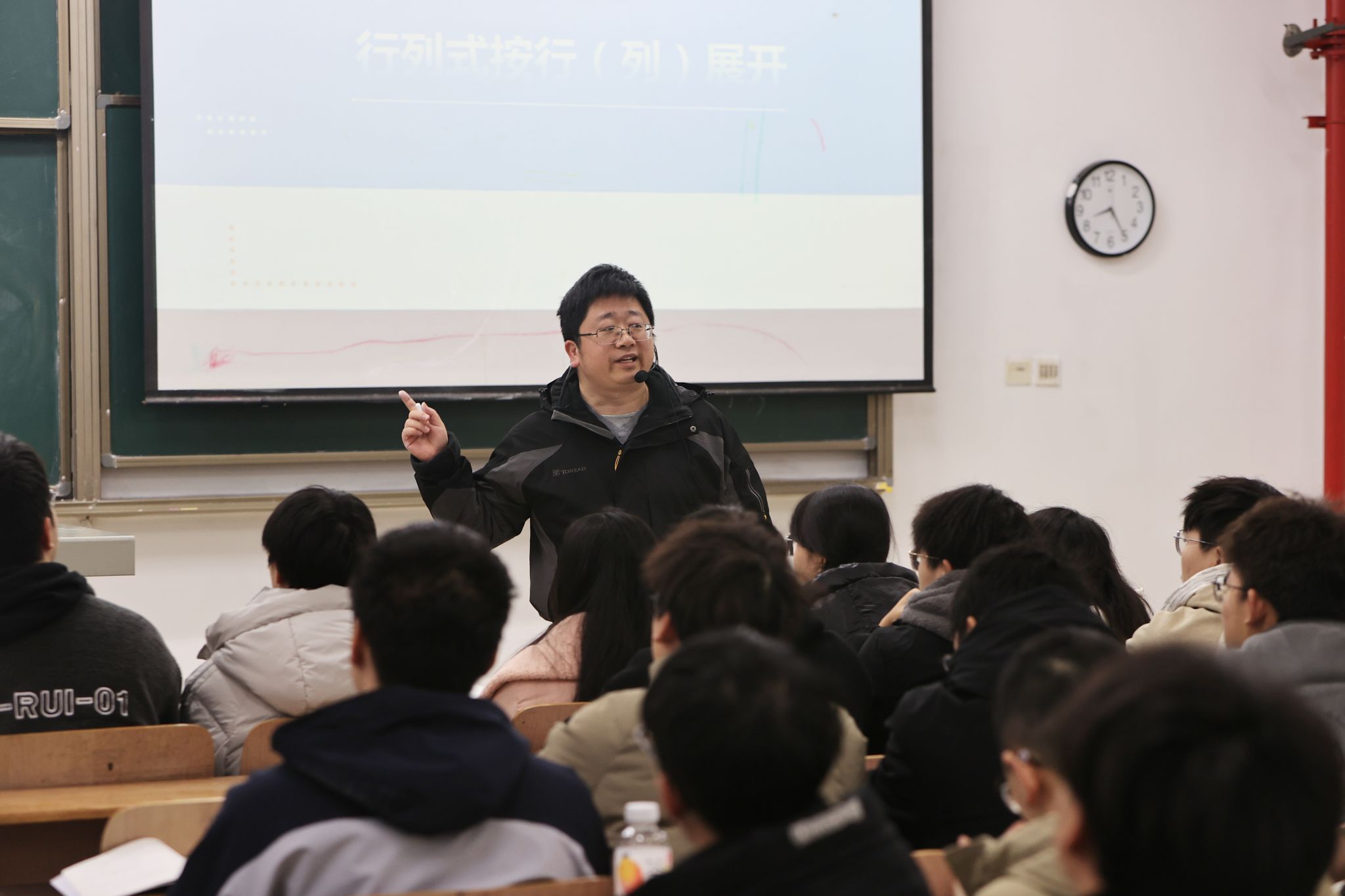 在1教106教室,校长吴永桥、副校长李猜在党政办公室和教务部负责人陪同下,认真听取了张甜老师讲授的《线性代数》。吴永桥对课堂上老师认真的教学态度、清晰的教学思路、丰富的授课内容以及学生的听课状态给予了高度评价。李猜勉励张甜老师充分发挥优秀教师的带头示范作用,积极推广优质教学资源和教学方法。