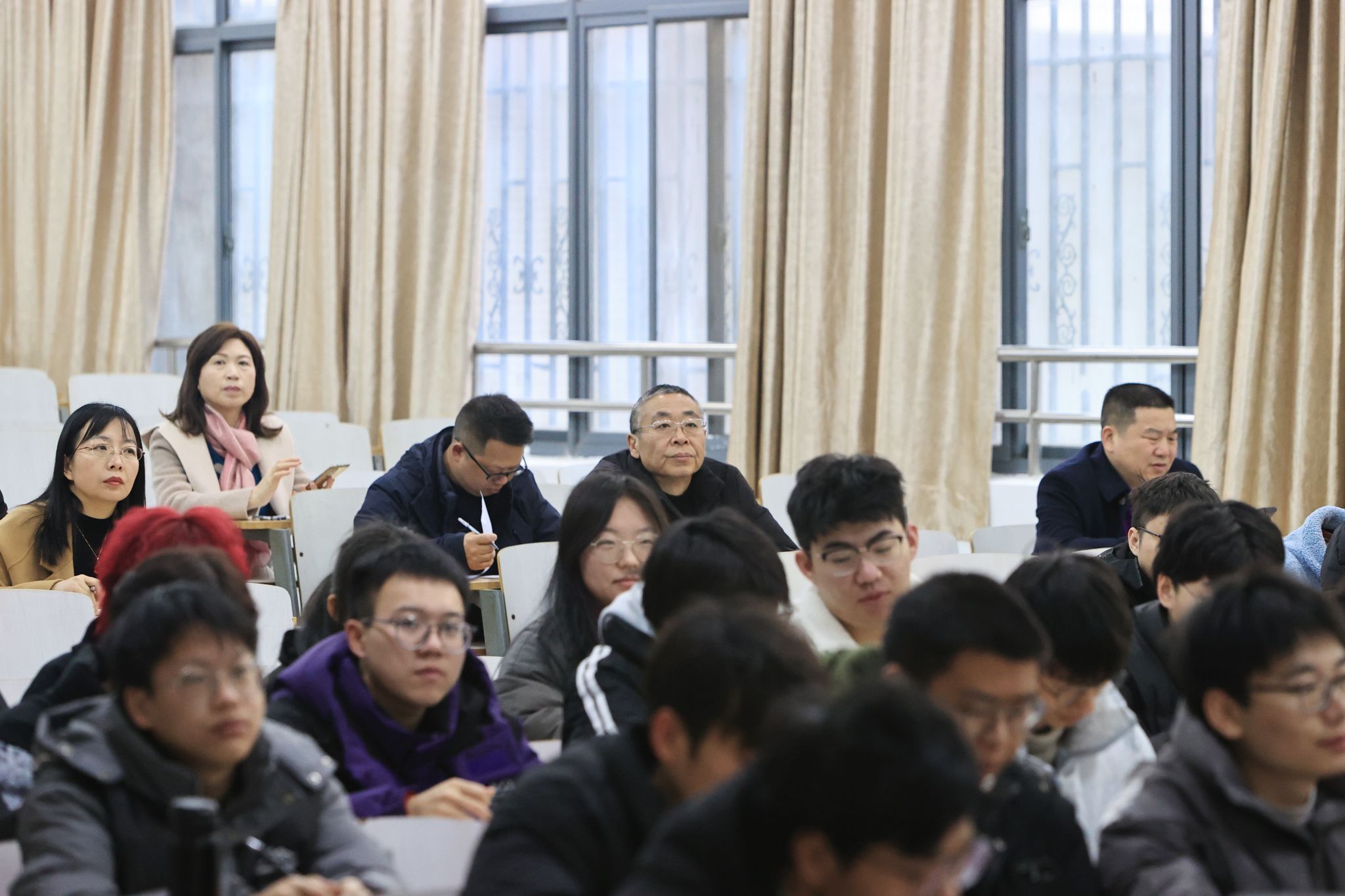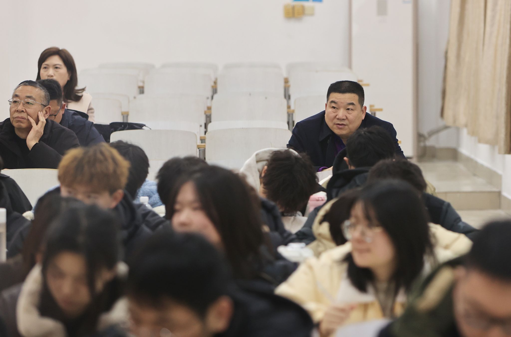 副校长丁成忠,副校长胡水兵,财务总监谭婧来到1号教学楼201教室,和学生们一起聆听程小芳老师的《金融风险管理》课程,并在课后与学生亲切交流,了解学生上课感受,勉励学生新学期努力学习。