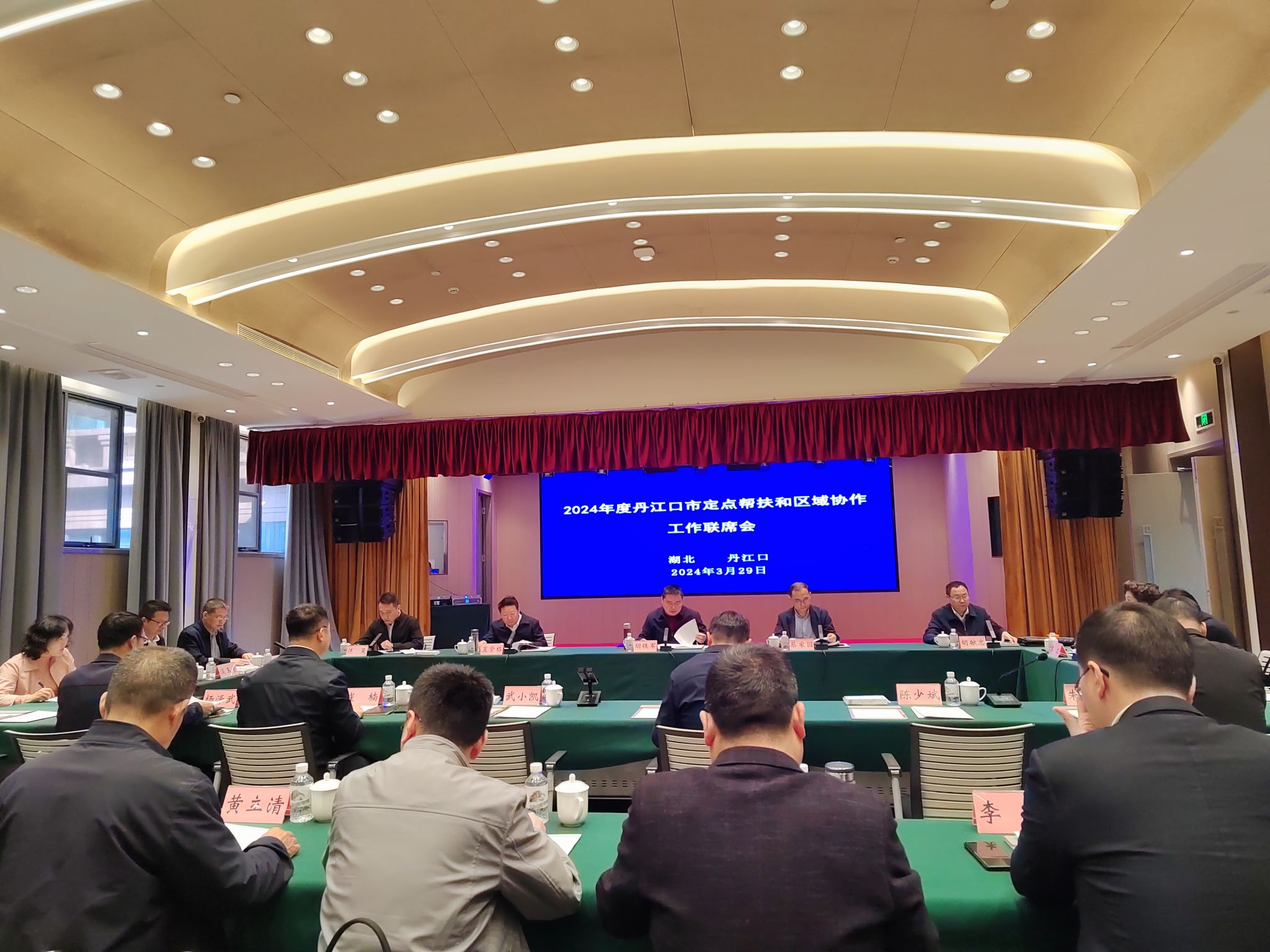 3月29日上午,省政府国资委在丹江口市召开定点帮扶和区域协作工作联席会,总结交流2023年度定点帮扶工作情况,部署推进2024年工作。省政府国资委副主任胡铁军,省政府国资委社会责任处处长陈昊,丹江口市市长武小凯等相关领导出席。我校党委常委、党委组织部部长淡玉堂,驻村工作队队长黄大伟参会。
