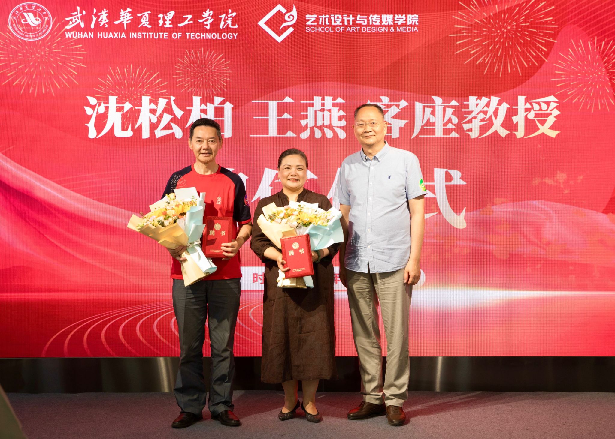 会上,校长吴永桥为非遗剪纸传承人沈松柏先生和非遗汉秀传承人王燕女士颁发武汉华夏理工学院客座教授聘书。他期待两位专家为学校注入非遗研究新活力,为培养具有中华优秀传统文化素养的新时代人才贡献力量。
