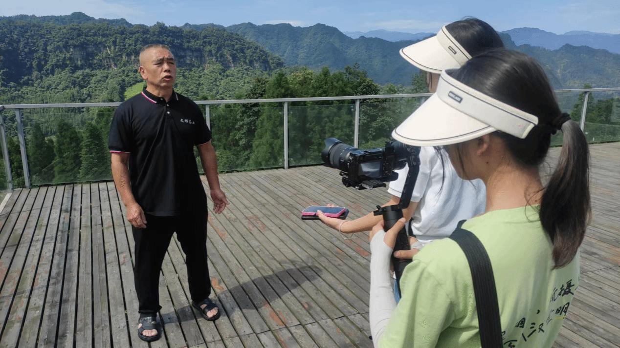团队克服各种困难,深入田间地头,街头巷尾,通过实地考察、访谈交流等方式,开展乡村振兴主题调研。队员们在柏香茶园,亲身感受“绿水青山就是金山银山”的生态发展理念,在小谷溪村调研湖羊产业发展的现状。学生在深度体验中探社情,寻民情,察国情,并与专业、兴趣特长相结合,开展相关主题作品创作、设计,组织拍摄献礼40周年主题宣传片,创作原创歌曲,制作原创MV,开展文旅推广等品牌形象设计。