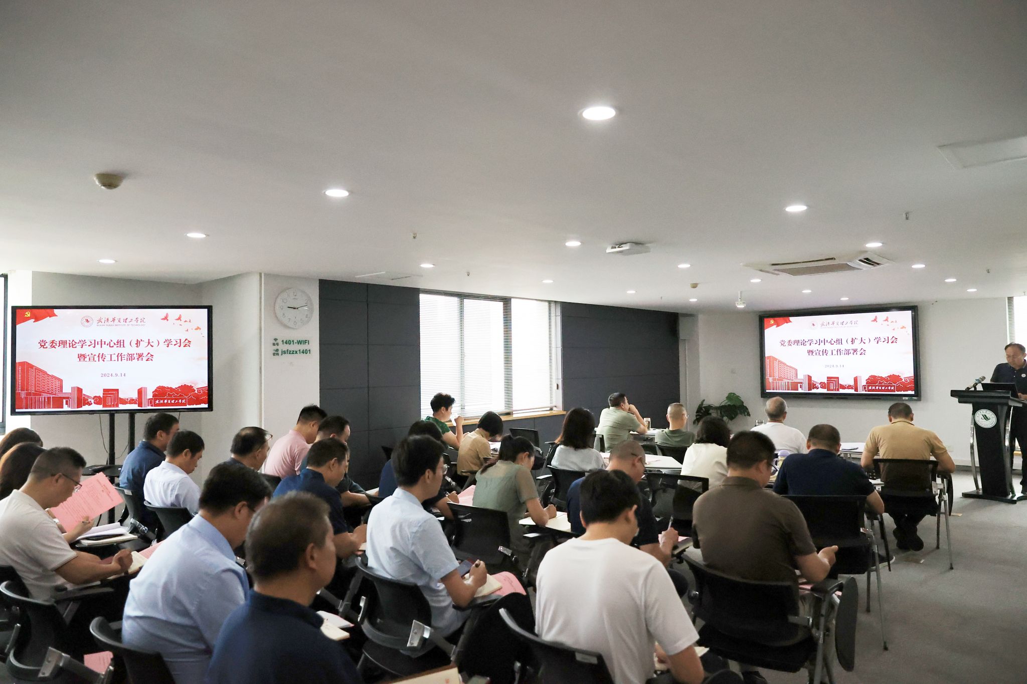 9月14日上午,学校在综合楼1401会议室召开党委理论学习中心组第七次集体学习会议暨宣传工作部署会。校领导、党委常委、委员,各二级党组织书记及学院信息联络员,各职能部门负责人及信息联络员,党委宣传部全体人员参加会议。会议由校党委书记丁德智主持。