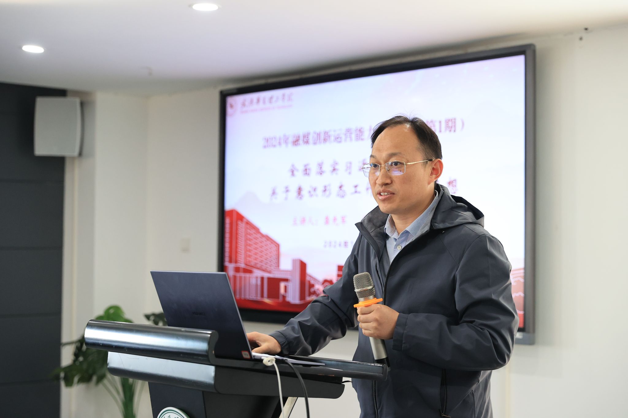 开班仪式结束后,首场专题讲座正式开始。党委宣传部部长龚先军主讲《全面落实习近平总书记关于意识形态工作的重要思想》。培训内容围绕习近平总书记关于意识形态工作的重要论述、当前宣传思想工作中面临的意识形态工作挑战、如何齐心协力做好学校意识形态工作等内容展开。他结合自身在宣传工作中积累的经验和对典型案例的剖析,阐述了宣传工作在意识形态领域的重要性,分析了当前宣传工作面临的挑战,强调做好高校宣传工作的重要责任与意义。