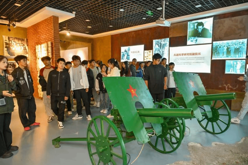 在讲解员的带领下,师生们先后参观了国防科技常识展、中共蔡甸革命斗争史展、侏儒山战役纪念展、吴运铎纪念馆,了解馆内每一张图片、每一份文献背后的故事,重温老一辈革命家艰苦卓绝的斗争历史。师生们还近距离观摩了从部队退役的飞机、火炮、雷达等军用武器,实地感受军事装备建设的重要性,深切体会国防建设的重要意义。