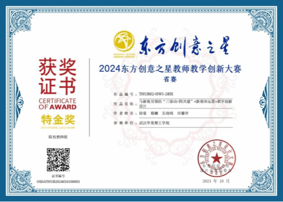 近日,2024东方创意之星教师教学创新大赛(教师赛)省赛获奖名单公布。我校艺术设计与传媒学院教师积极参赛,荣获特金奖6项,金奖2项,银奖2项。学校荣获优秀组织单位奖。特金奖作品推送至国赛进行评审。
