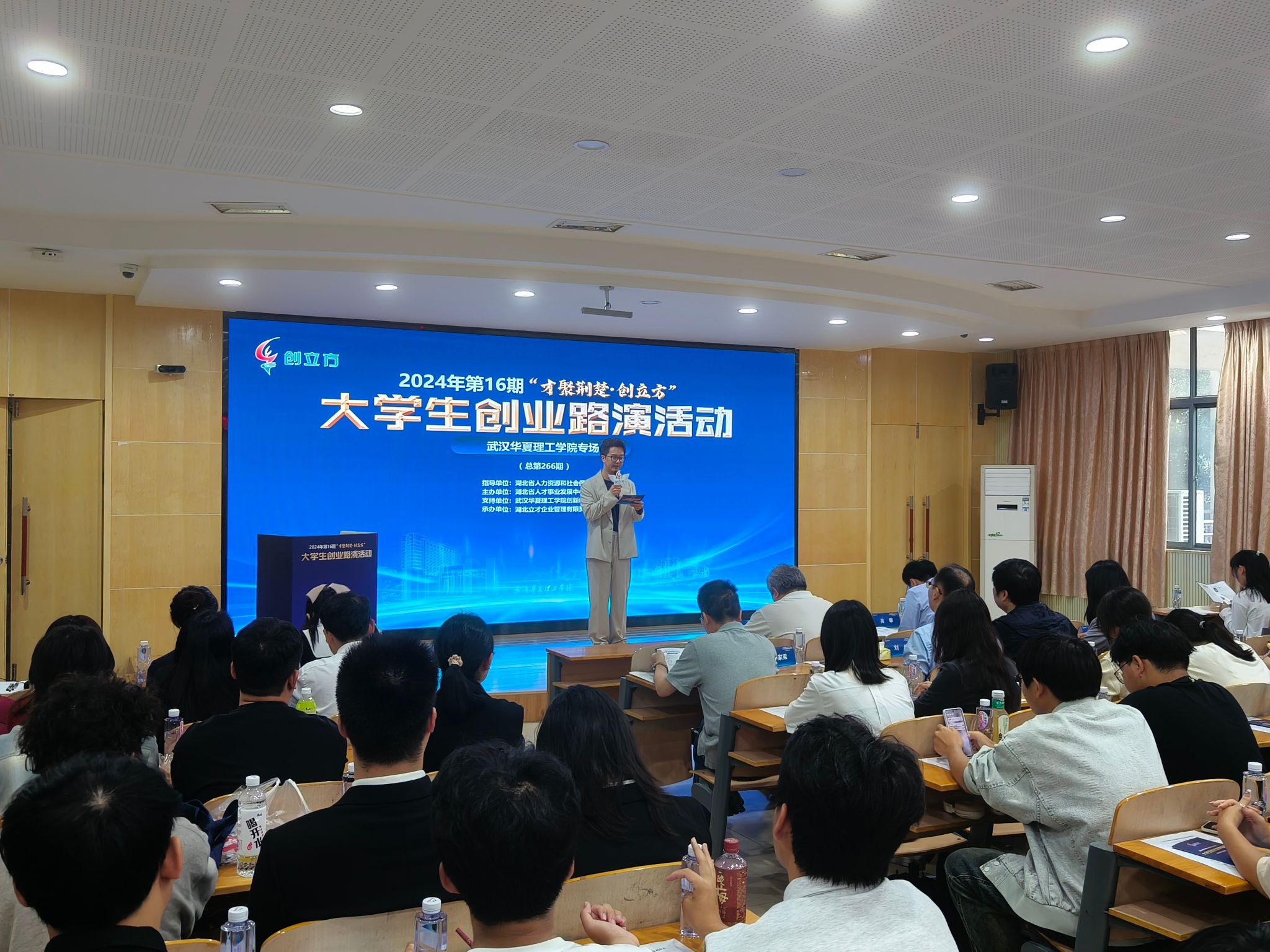 10月17日下午,2024年第16期“才聚荆楚·创立方”大学生创业路演武汉华夏理工学院专场暨我校第三十三期“华夏·创客汇”活动在2教201报告厅举行。湖北省人才事业发展中心大学生就业创业服务处处长刘扬出席。赛伯乐绿科投资集团湖北合伙人李珂,达晨财智业务合伙人、湖北分公司总经理吴攀担任嘉宾现场指导。