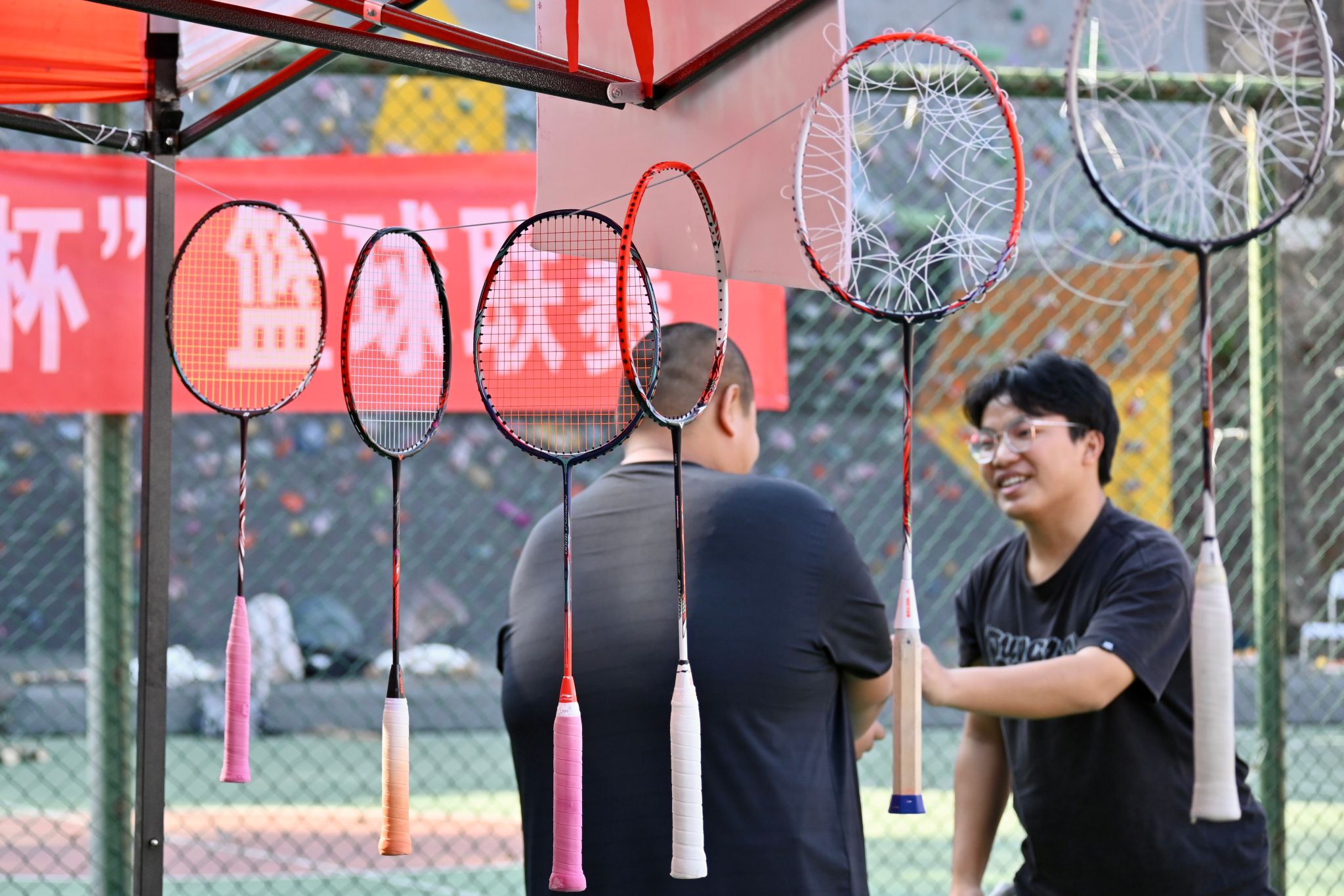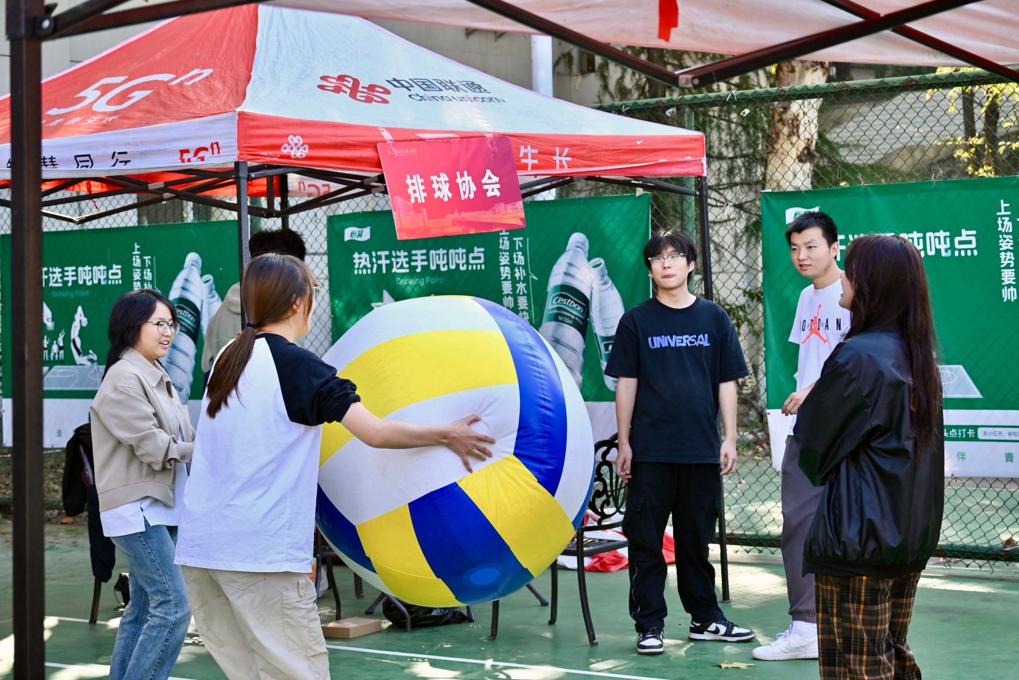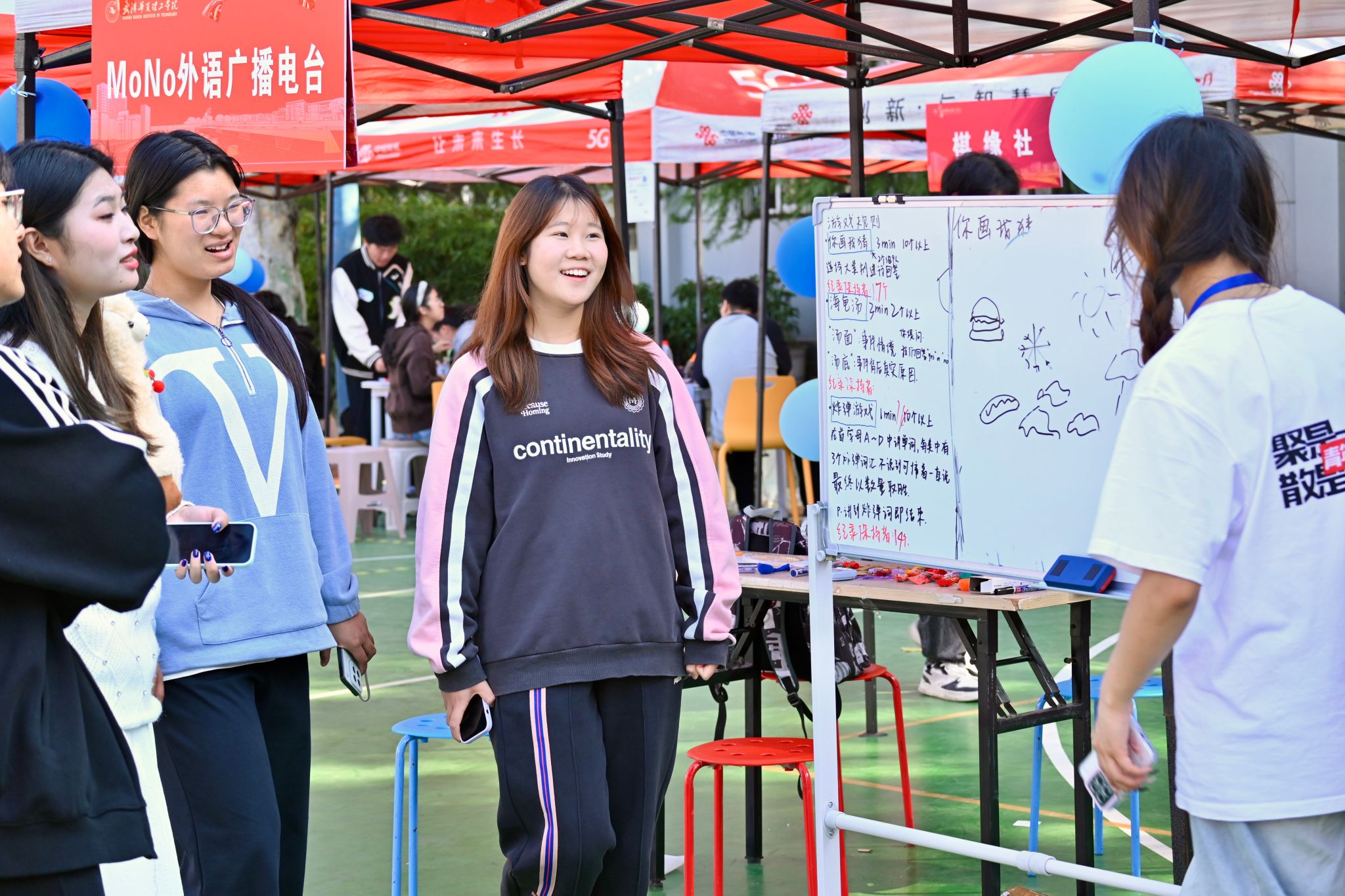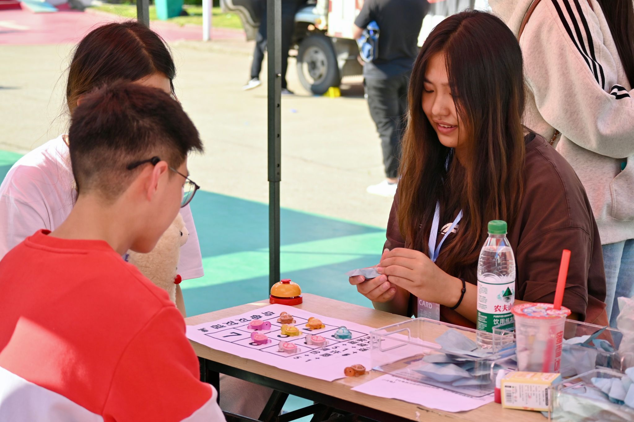 当天,桃园食堂门前的篮球场热闹非凡。羽毛球协会的展位前,不少同学挥舞球拍,体验击球的乐趣;搏击社内,靶子和拳套准备就绪,气氛紧张又刺激;自行车协会的炫酷自行车吸引了众多同学前来体验骑行的快乐;舞蹈社团成员优美的舞姿一时成为全场的焦点。乌龟消消乐,手工艺品制作,欢乐套圈圈,狼人杀游戏……青年传媒集团、手工社、动漫社等社团带来一系列互动感十足的沉浸式活动,参与者携带集章卡穿梭于各个展区之间,获取社团盖章,于兑奖处领取奖品。活动现场人山人海,前来参观打卡的同学络绎不绝,欢笑声此起彼伏。