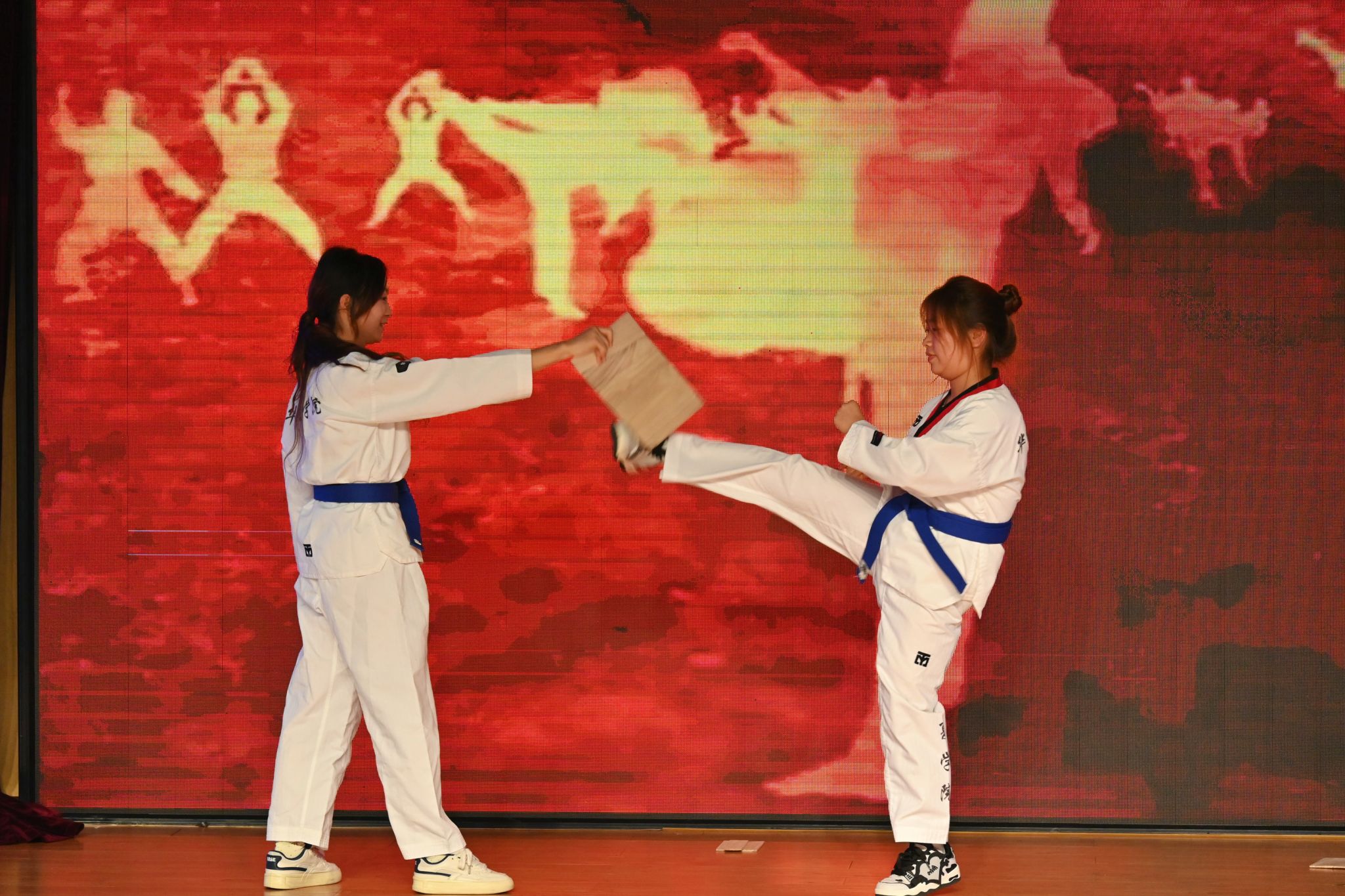 晚上7时30分,社团文化节成果展文艺汇演在校报告厅开展。在《街舞啦啦操》的动感节奏中,演出正式开幕。生物与制药学院啦啦队的民族舞蹈《浮·舍》,将民族特色展现得淋漓尽致;华夏跆拳道社的《旋风少女》武术表演,充满力量与激情;青年新声社的小合唱《try + goodtime》欢快而愉悦,让观众忍不住跟着摇摆互动。笛箫协会、武术协会、大学生艺术团、话剧社、街舞社、吉他社等数十个社团纷纷拿出自己的“独门绝技”,给大家带来了一场精彩纷呈的社团文化盛宴。