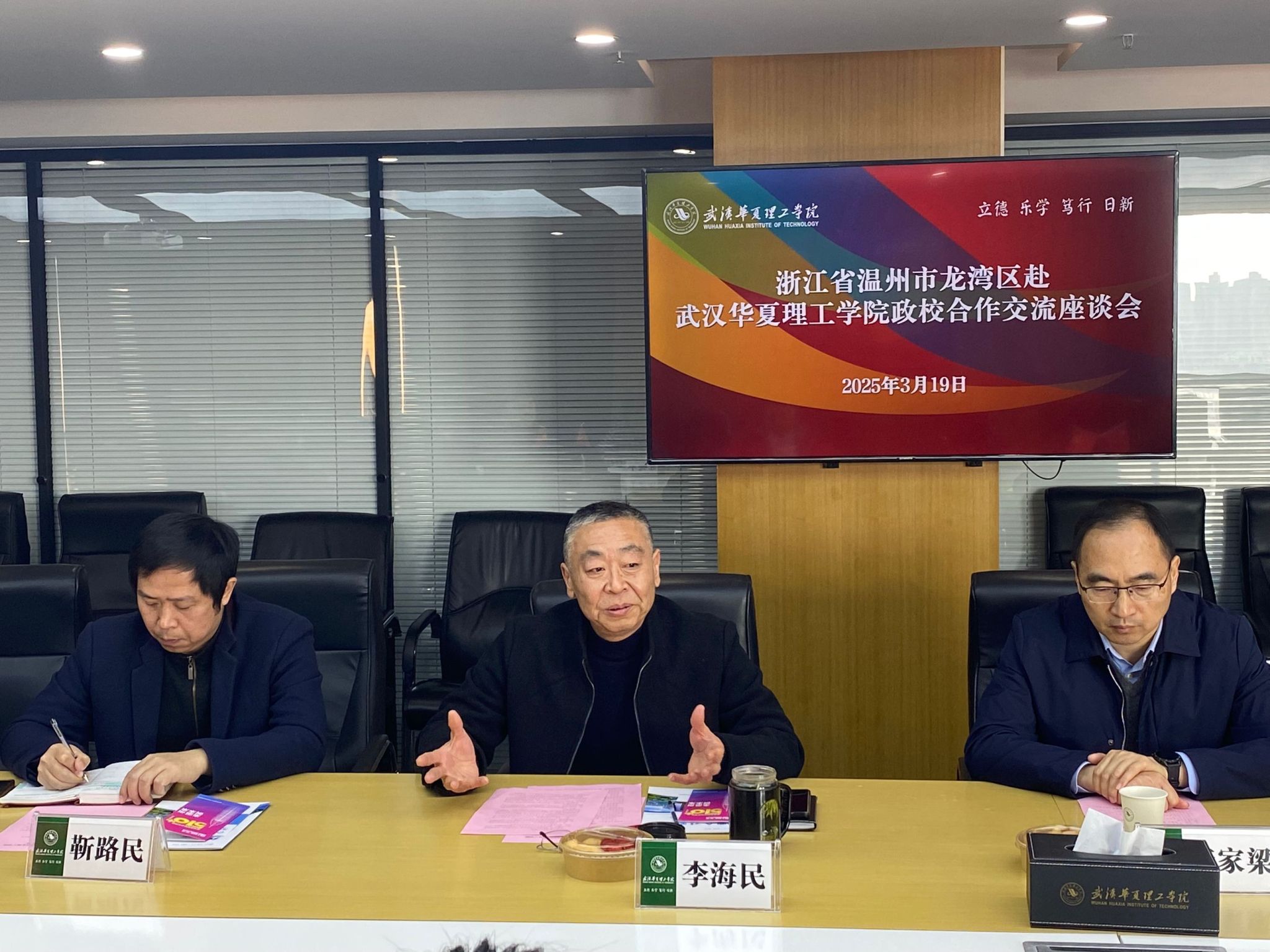 为深化产教融合,促进政校企协同发展,3月19日,学校在综合楼1402会议室组织召开了以“携手共进,合作共赢”为主题的浙江省温州市政校座谈会。中共温州市龙湾区委组织部副部长、龙湾区人力资源和社会保障局党组书记、局长邓李梅,相关政府部门领导,学校党委副书记、副校长李海民,各学院党总支副书记及学生就业创业服务指导中心全体成员参加。会议由学生就业创业指导服务中心副主任刘继平主持。