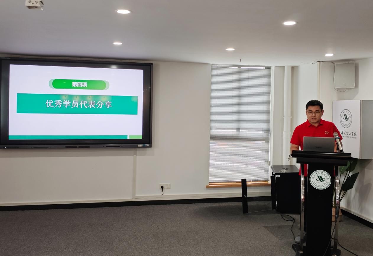 优秀学员代表、智能制造学院辅导员陈张柱作交流发言。他代表全体新入职辅导员郑重承诺:将始终牢记“为党育人、为国育才”初心使命,以“学”夯基、以“行”践知、以“爱”铸魂,努力成为学生成长成才的知心人、热心人、引路人。