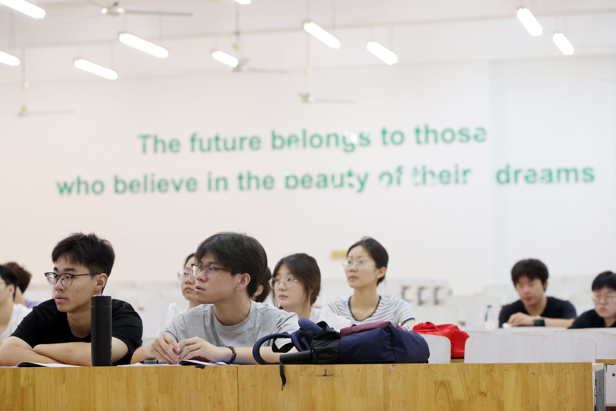 “非学无以广才,非志无以成学”“博学之,审问之,慎思之,明辨之,笃行之”……课间,教室后墙新布置的名言警句前,吸引了众多师生驻足品读。暑假期间,党委宣传部牵头对三栋教学楼进行了文化氛围整体提升,通过精心布置各类励志名言、学术箴言,进一步营造了浓郁的教学文化氛围。