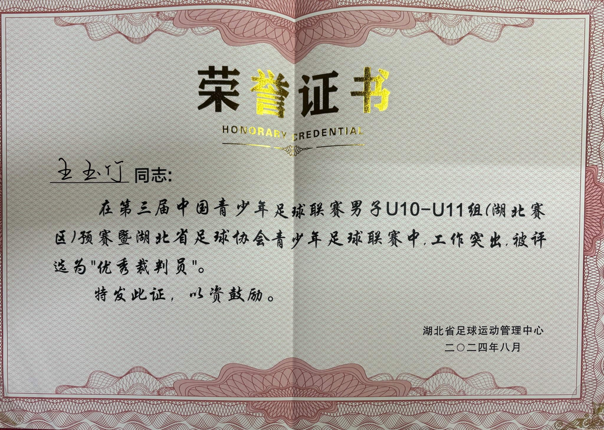王玉竹自2020年入学后便与足球裁判工作结缘。在求学期间,她就展现出了对裁判事业的浓厚兴趣和极高的热情。她系统学习裁判知识,积极参与各类足球赛事执裁,不断积累实战经验,逐步成长为一名沉着冷静、备受认可的裁判员。她的成长也充分体现了我院注重实践育人、以赛促教的培养特色。