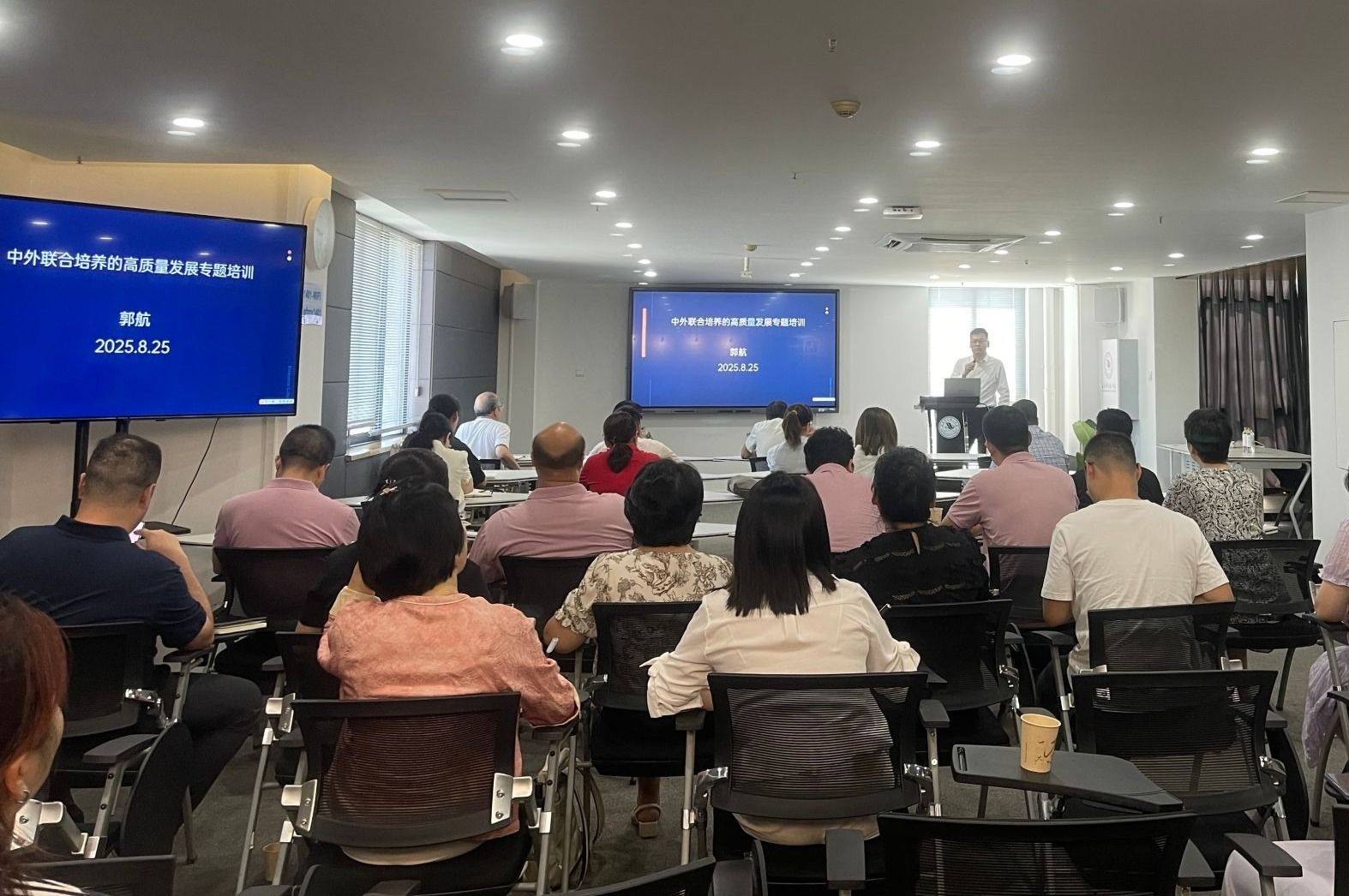 肖凤华在主持中表示,郭航教授在中外合作办学和校际交流领域具有丰富的实践经验和深厚的专业见解。作为我校客座教授和项目指导专家,她期待郭航教授进一步推动我校与国内外高校及研究机构的深度合作,同时希望与会人员以此次讲座为契机,加强校内协同,凝聚共识,共同助力我校中外校际交流项目实现高质量发展。