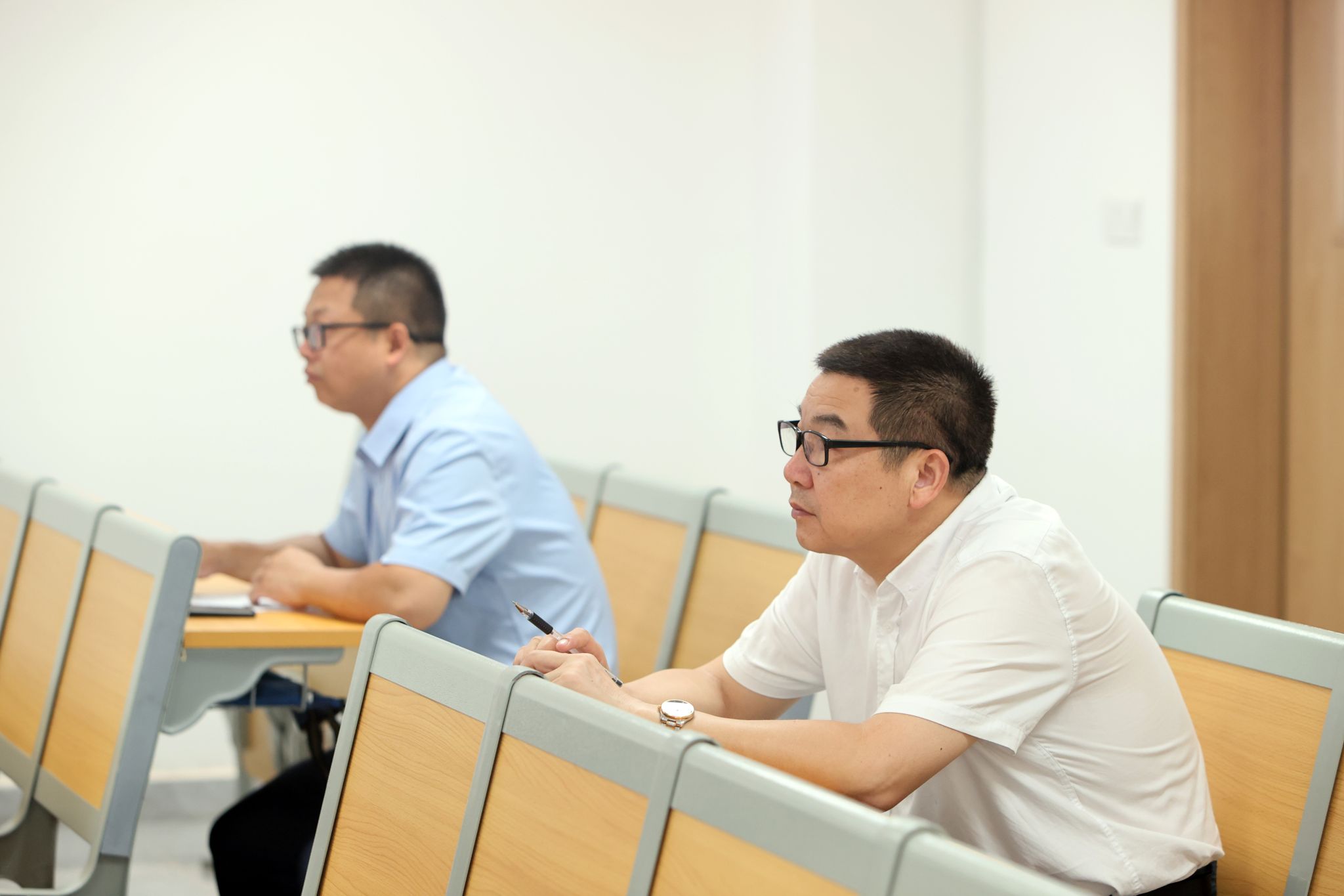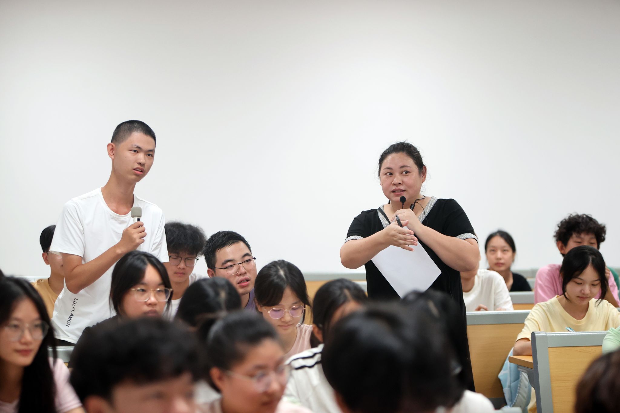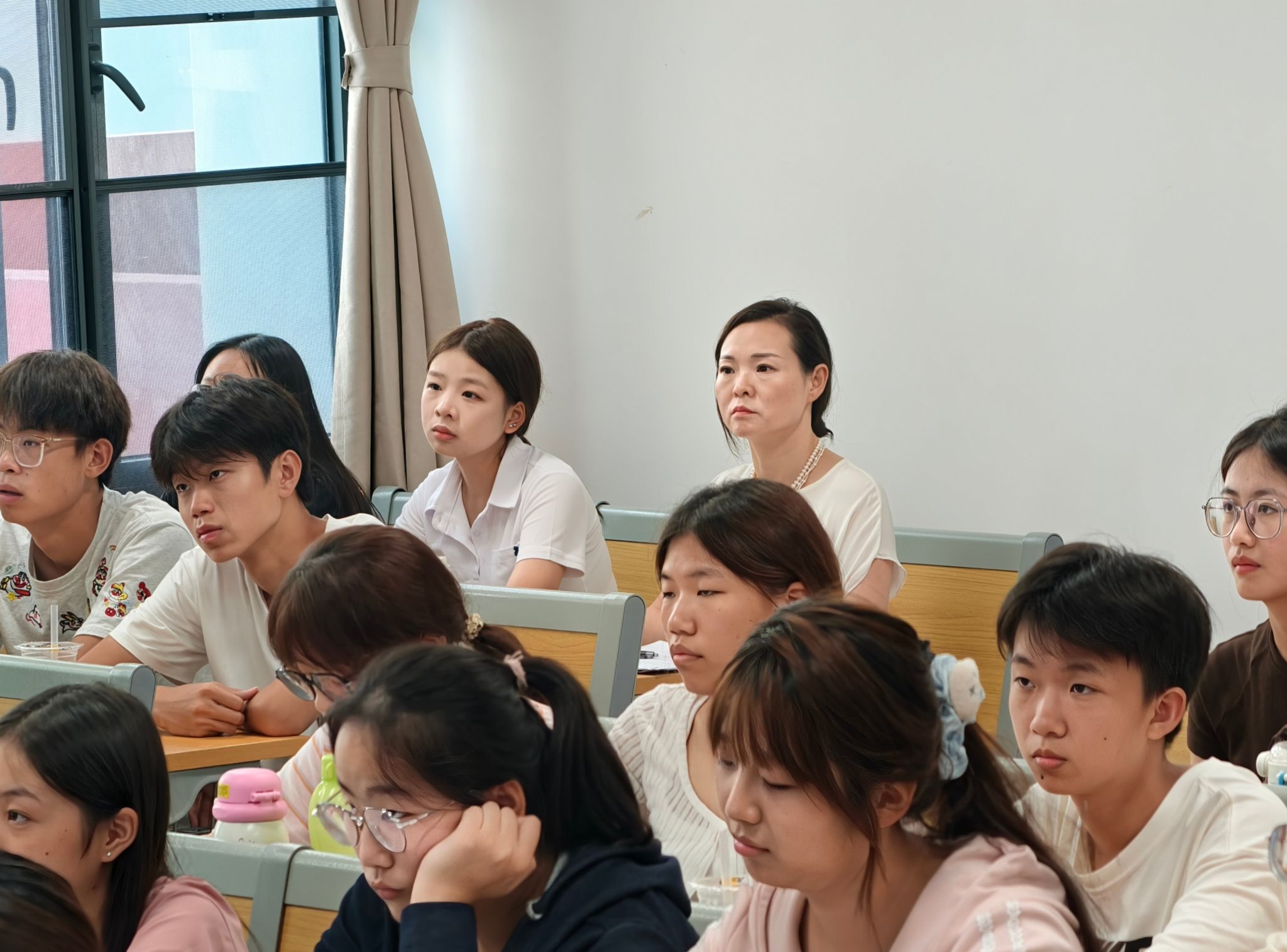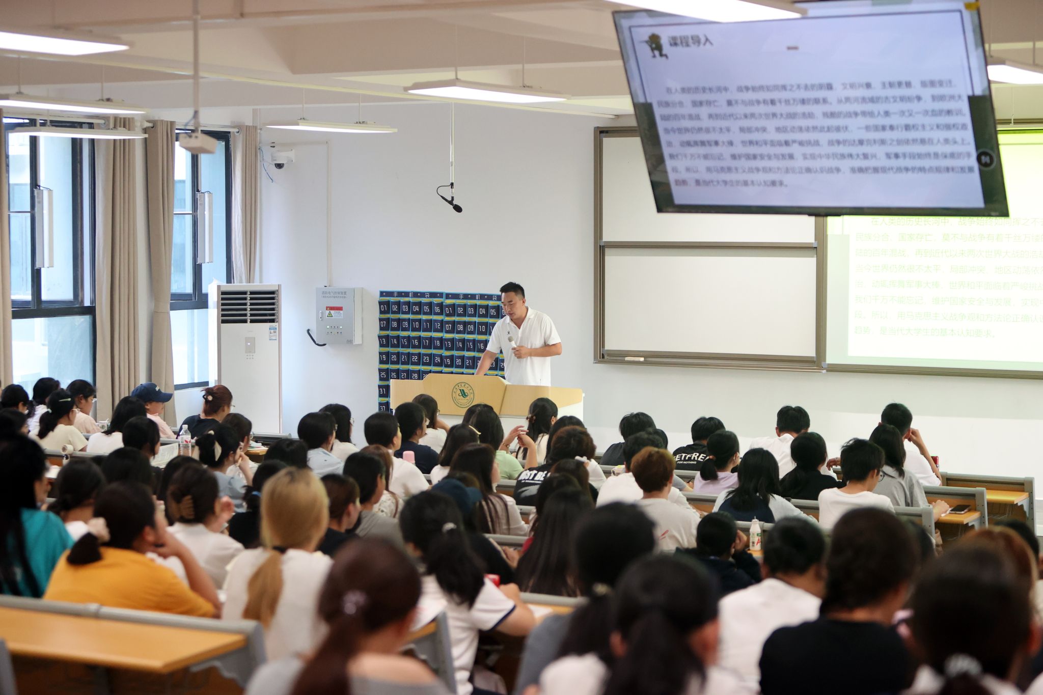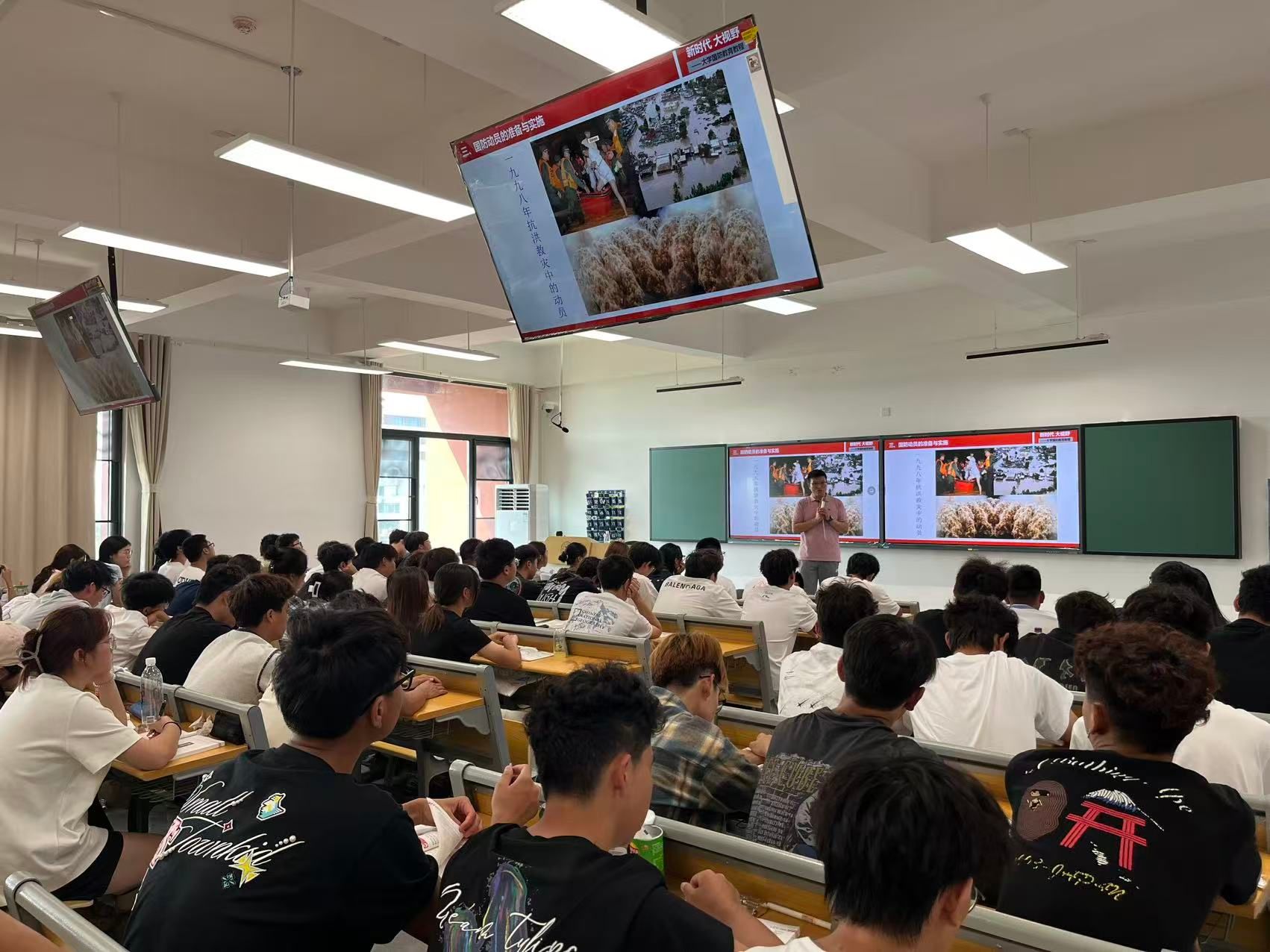 党委书记丁德智,党委副书记、副校长李海民分别听取了马克思主义学院教师马文明的《军事理论》与外国语学院彭慧副教授的《大学英语Ⅲ(一)》。丁德智一边听课一边认真记录,并在课后点评中指出,马文明老师的课程案例鲜活、数据详实,有效结合了时事热点,体现了思政课“因事而化、因时而进”的要求,同时建议进一步加强教学内容与大纲的精准对应,优化视频材料运用,以提升课堂讨论的深度。