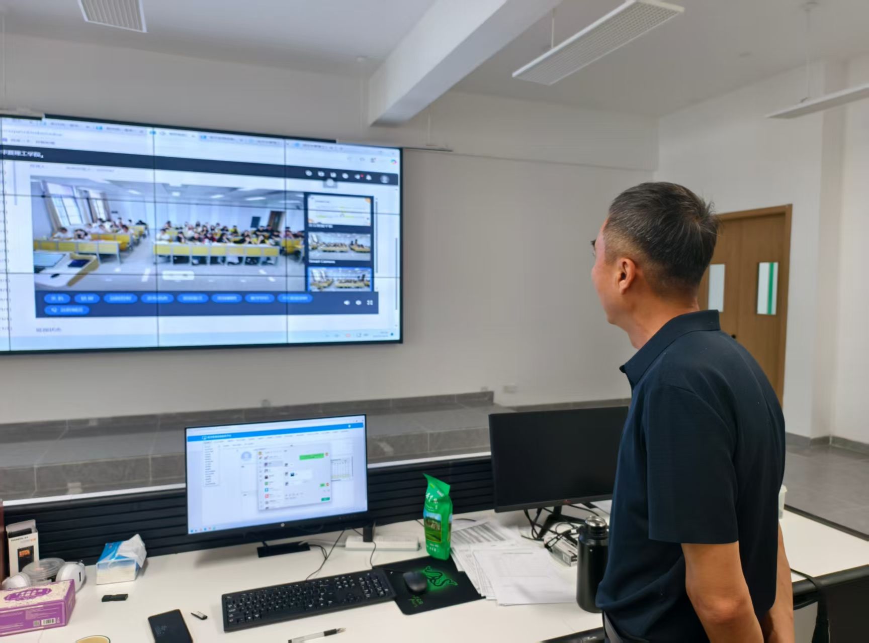 当天上午,张晓东一行实地走访了教学楼、食堂、超市及文创店等重点区域。在教学楼,他细致检查了多媒体设备运行、教室环境卫生与课堂教学实况,并通过监控室全面了解师生到课情况。在食堂,他重点关注菜品价格与食品留样记录,强调务必“让学生吃得安心、家长放心”。在超市与文创店,他仔细查验商品质量、价格及进货台账,严防“三无”或高价商品流入,并叮嘱负责人要将校园超市办成“服务学生的窗口”。巡查中,张晓东强调,“开学无小事”,要确保校园的每个环节都成为育人阵地。