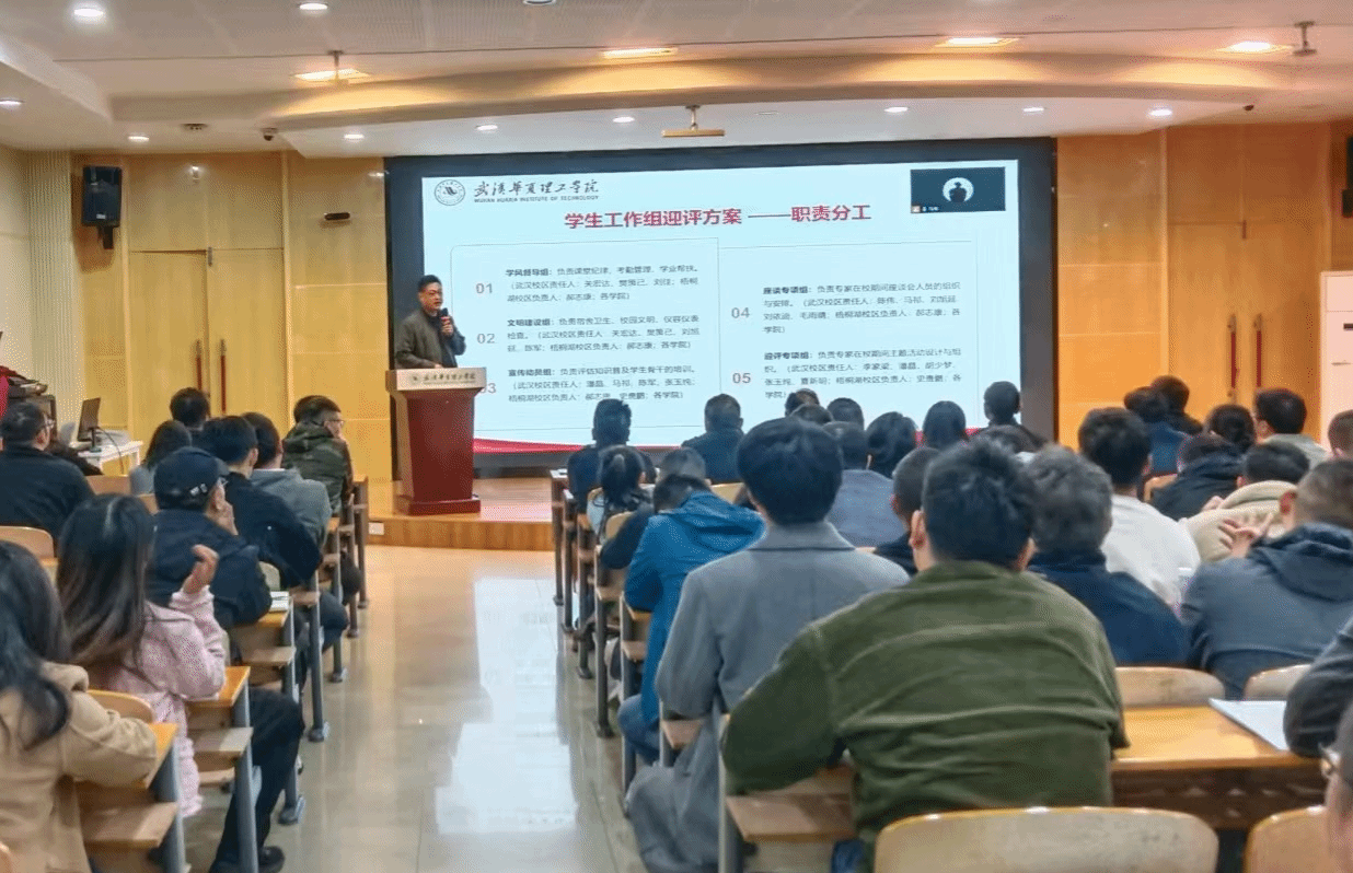 会议同步公布了迎评期间校园文化活动安排及各学院区域分工,同时也对评估期间辅导员的工作提出明确要求:加强课堂巡查与纪律管理,每日走访学生寝室,严格落实值班制度,并积极组织参与主题班团会等学生活动,全面保障评估期间学生工作有序开展。