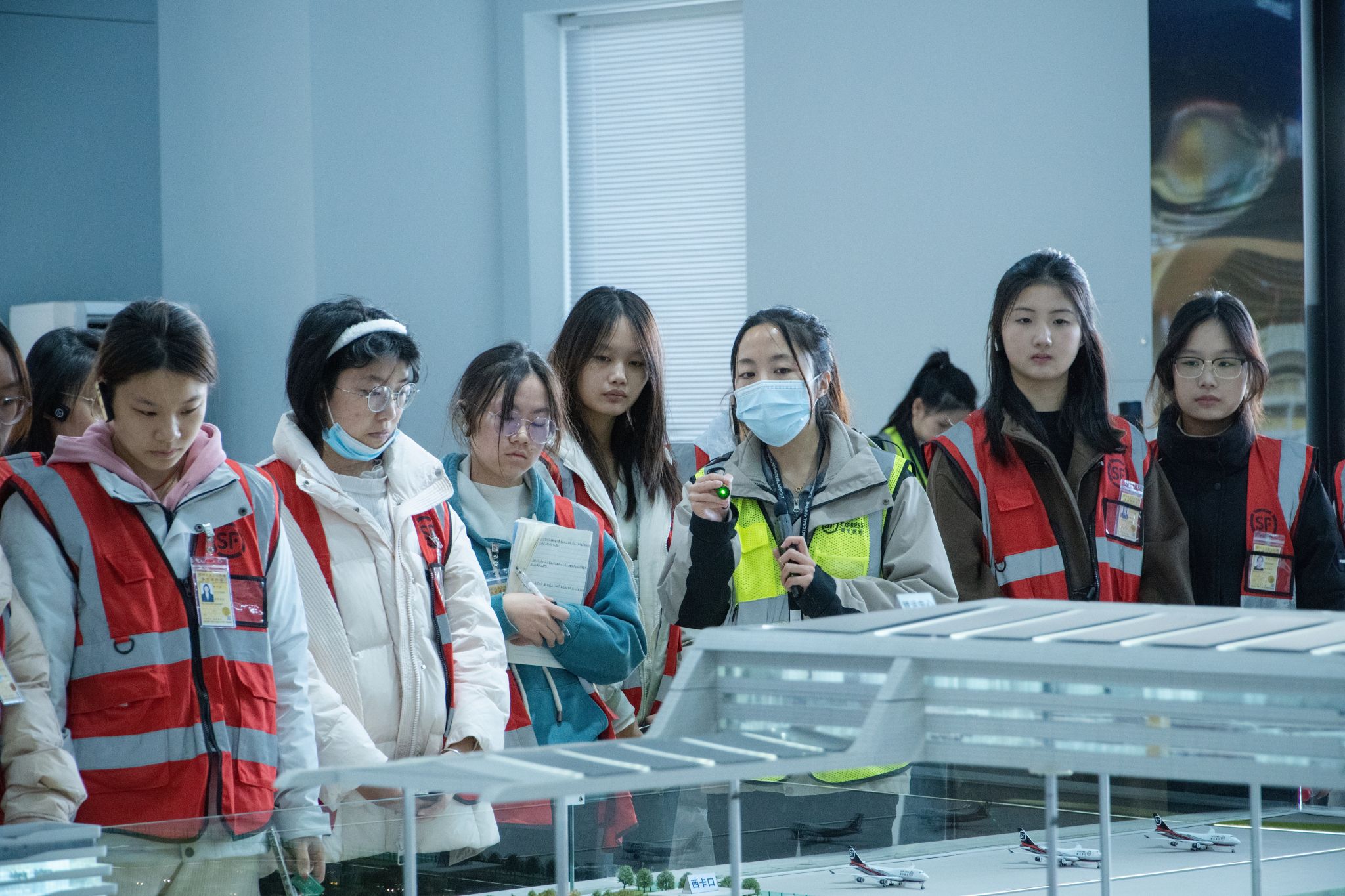 鄂州花湖机场顺丰转运中心作为亚洲首个专业货运枢纽机场的核心部分,承载着“一夜达全国、隔日连世界”的高效物流使命。在参访过程中,同学们实地走访了分拣区与货运停机坪,通过沙盘展示与数字化系统讲解,深入理解其作为“亚洲第一货运枢纽”的战略定位与运作机制。行业导师围绕智慧物流技术、航空经济生态及职业发展路径进行专题分享,同学们结合自身专业积极提问,提出创新设想,现场互动氛围热烈。