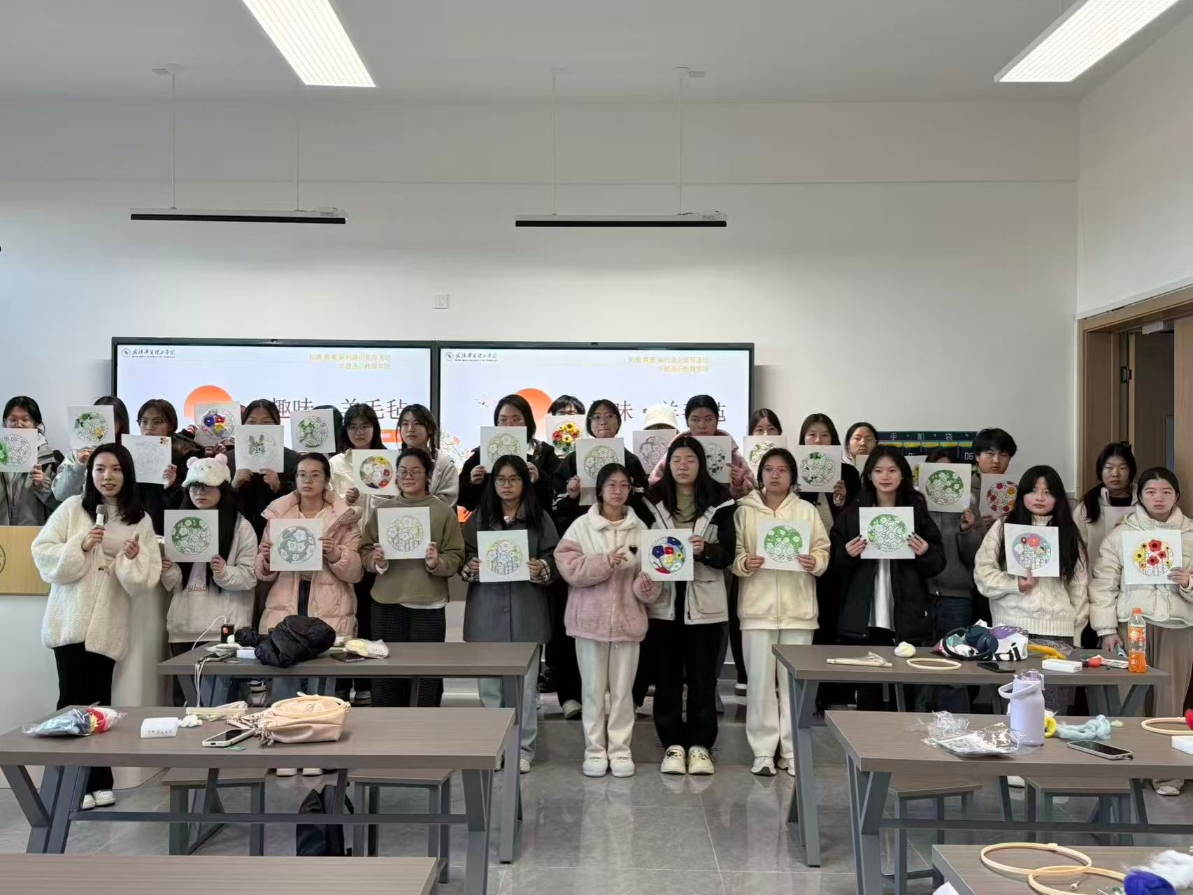 一团蓬松的羊毛,一根灵巧的戳针,在指尖的轻盈起落间,便能创造无限可能。11月28日下午,一场以“知美·育美”为主题的羊毛毡手工创作工坊在我校梧桐湖校区温情开启,30名大一新生在艺术设计与传媒学院刘雪颖老师的带领下,开启了一场与传统手工艺的深度对话,于戳戳点点中感受美、创造美。