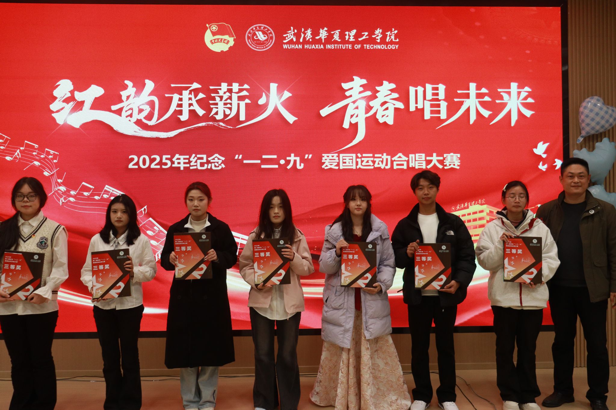 各参赛团支部凭借出色的演唱、创意编排以及与场景的高度融合,决出各类奖项。汽服1252、休体1253团支部荣获最佳人气奖;土木1252团支部、机自1251团支部荣获最佳风采奖;会计1257团支部等7支队伍荣获三等奖;软件1252团支部等5支队伍荣获二等奖;土木1252团支部、会计1253团支部、人工智能1251团支部荣获一等奖。