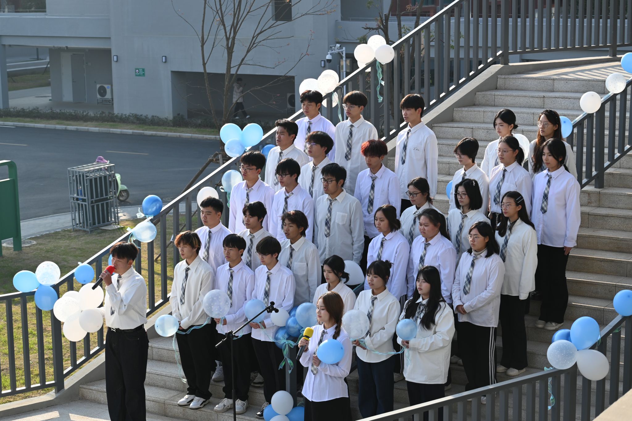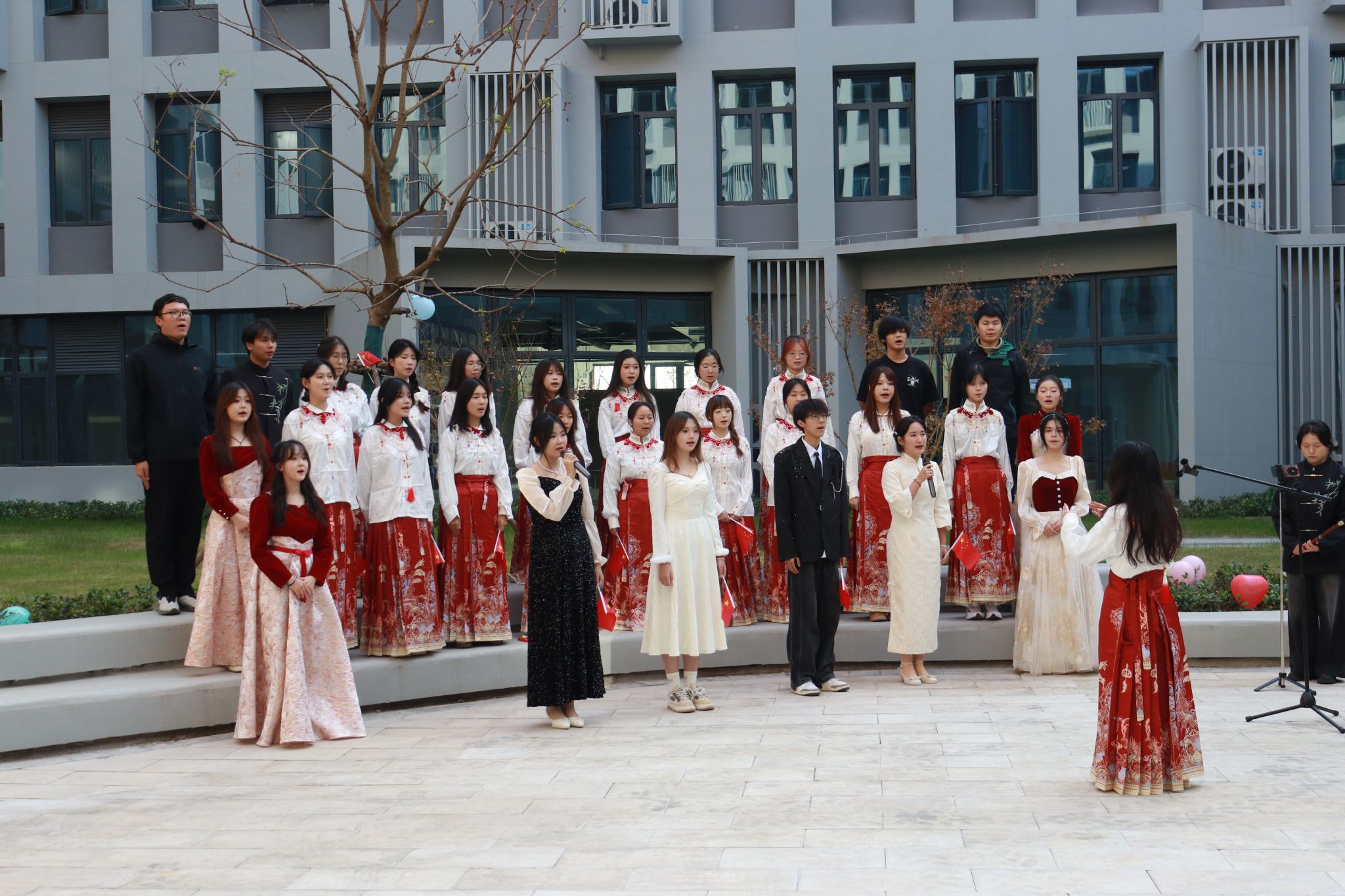12月5日下午,我校梧桐湖校区歌声飘扬、青春涌动。为纪念“一二·九”爱国运动,学校创新举办了一场别开生面的合唱大赛。活动以“流动音乐厅”为形式,将校园化为露天舞台,让红色经典在青春创意中焕发新魅力。副校长胡水兵、相关职能部门负责人及师生代表到场观摩。