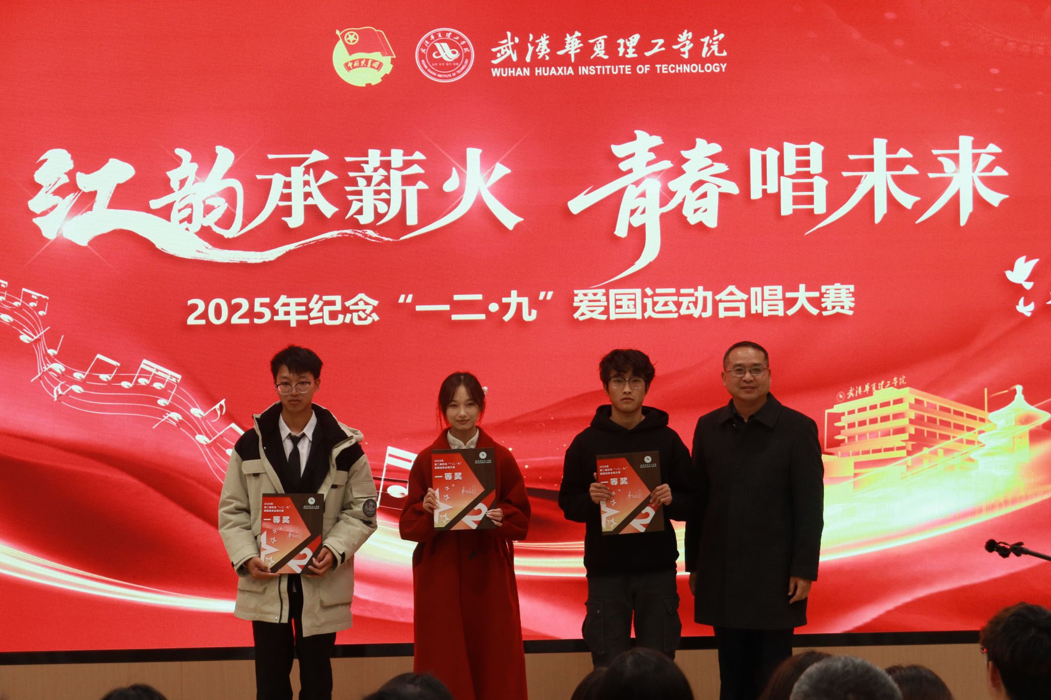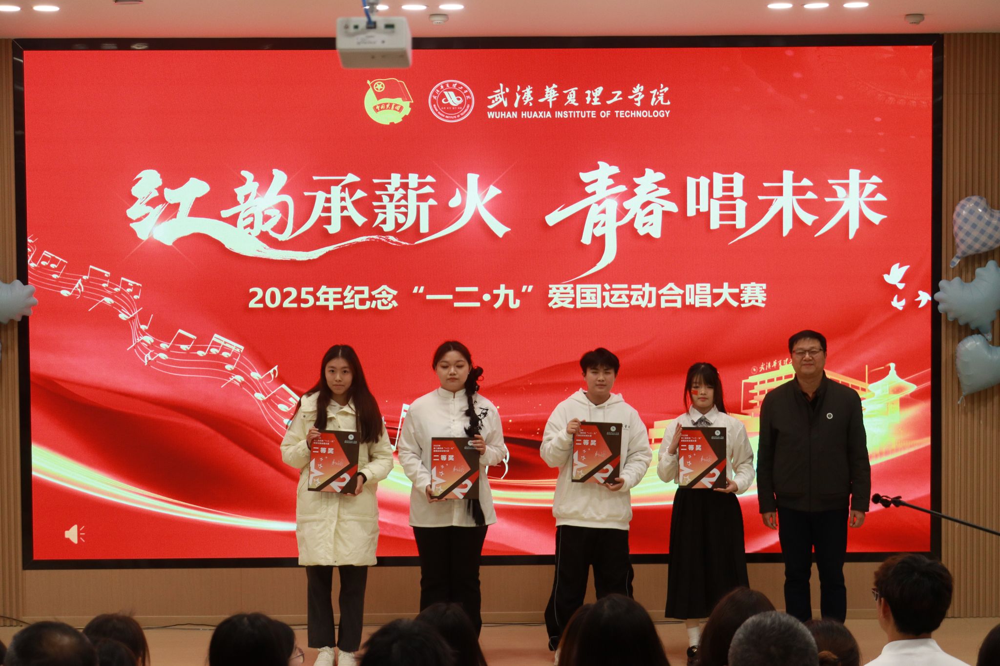 在场领导与评委为获奖队伍颁奖,并对同学们在比赛中展现出的艺术素养和集体精神表示高度肯定。