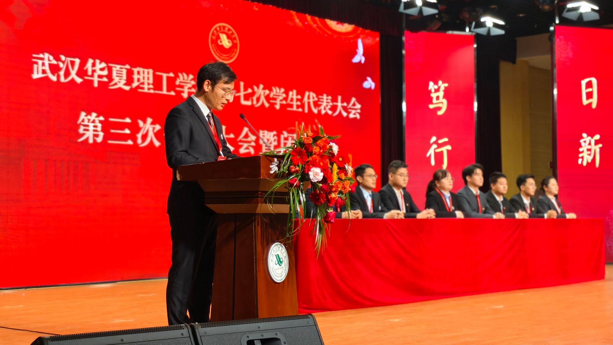 12月20日,我校第七次学生代表大会在学术报告厅开幕。湖北省学生联合会驻会执行主席夏天宇,校党委副书记、副校长李海民,相关职能部门负责人、各学院党总支副书记、学工办主任、团总支书记以及全体学生代表出席大会。开幕式由校团委副书记史贵鹏主持。