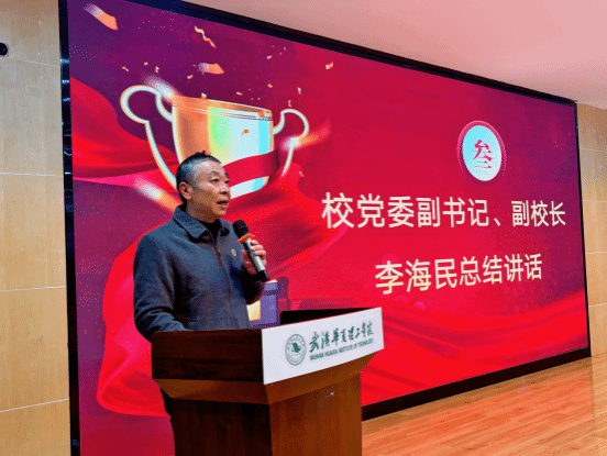 为大力弘扬校园体育文化,深入践行“五育并举”育人理念,促进学生全面发展,12月18日下午,我校第五届校园体育文化节颁奖仪式在光谷校区2教201报告厅举行。校党委副书记、副校长李海民,校党委委员、党委学生工作部部长陈伟,校党委学生工作部副部长、团委书记潘晶,各学院党总支副书记及获奖师生代表出席仪式。仪式由校团委宣传部部长陈军主持。