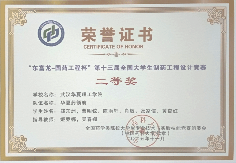 近日,第十三届全国大学生制药工程设计竞赛总决赛在上海落幕。我校生物与制药工程学院“华夏药领航队”凭借扎实的专业能力与工程创新设计,荣获全国二等奖。