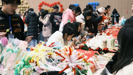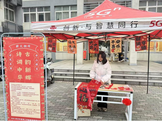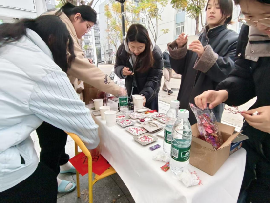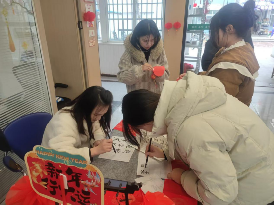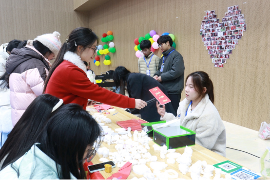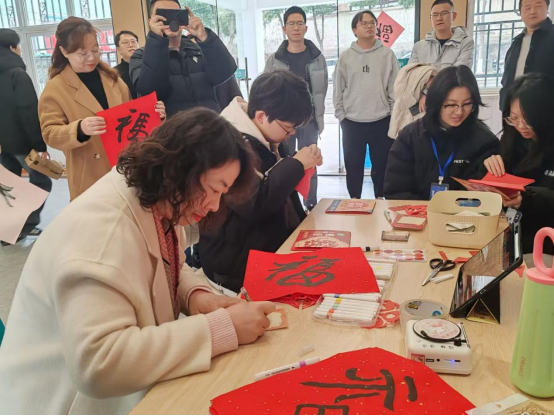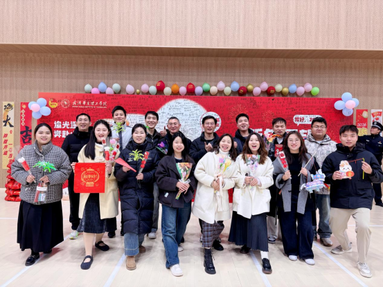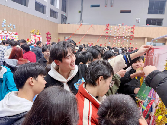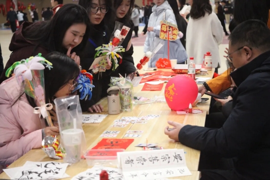 在光谷校区,活动以学生社区为舞台,围绕“文韵满庭,喜乐迎新”主题,营造出浓厚的传统文化沉浸式体验氛围。各学院精心策划了形式多样的特色活动:商学院开展笔墨书对联与知识竞答,土木建筑工程学院组织创意福字彩绘,体育学院带来舞狮表演展现非遗魅力,艺术设计与传媒学院引领师生制作香囊香薰,生物与制药工程学院将中医药文化融入趣味竞赛,信息工程学院以传统剪纸、书写福字邀师生共启新岁,外国语学院打造节日气息浓郁的环境布置,智能制造学院则以一系列趣味游戏点燃社区欢乐。师生们在参与中感受传统魅力,在互动中共叙迎新温情。