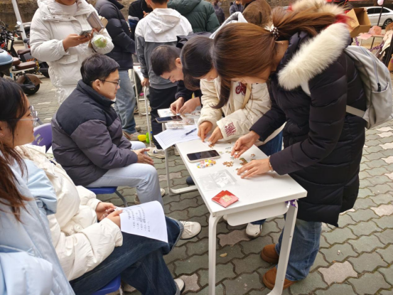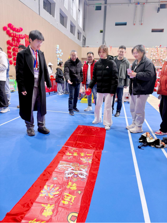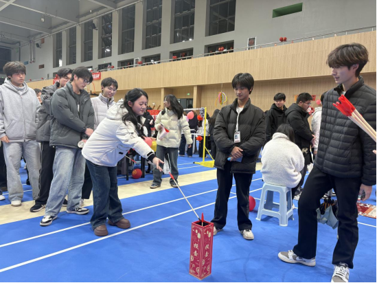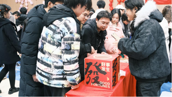 游园集章环节吸引了众多师生踊跃参与。大家手持精心设计的马年主题集章卡,穿梭于各学院设立的互动打卡点。艺术设计与传媒学院的创意写“福”、拓印、趣味挑战,商学院的楹联书写与知识问答,体育学院的数字竞猜游戏,信息工程学院的寻福卡、纸飞机送福、灯谜与剪纸,生物与制药工程学院的“望闻问切”中医药比拼,外国语学院融合糖葫芦、毛笔字与保龄球的趣味体验,土木建筑工程学院的投壶与知识答题,以及智能制造学院结合科技元素的“智造投壶”与手工制作……丰富多样的活动让师生们在探索与挑战中尽情享受乐趣,集章卡上每增添一枚印记,都伴随着一份真挚的新年祝福。