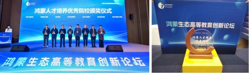 在鸿蒙生态高等教育创新论坛环节,王绪梅代表学校接受“鸿蒙人才培养优秀院校”授牌。大会同期举办了“光谷人才种子基金鸿蒙生态首批项目意向签约”,张平代表学校与鸿蒙生态企业完成签约。