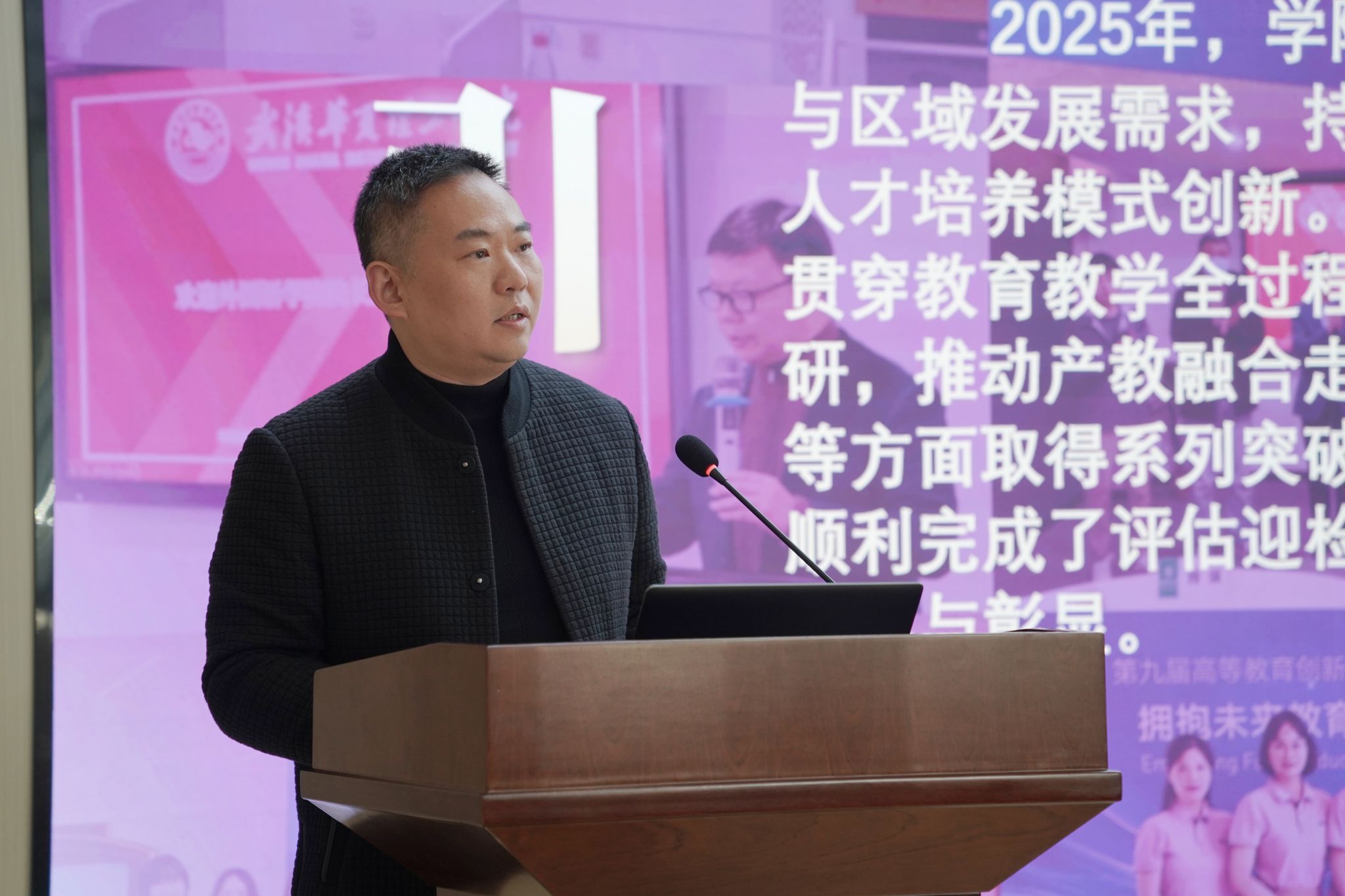 会议由副校长丁成忠主持。他提到,2025年是学校发展进程中具有里程碑意义的一年。全校上下凝心聚力、攻坚克难,顺利完成合格评估相关工作,展现出高度的责任感与执行力,为学校高质量发展奠定了坚实基础,也为迈向新征程注入了强劲信心。本次考核汇报会既是对全年工作的集中审视,也是各单位展示成效、交流经验、互学互鉴的重要平台。