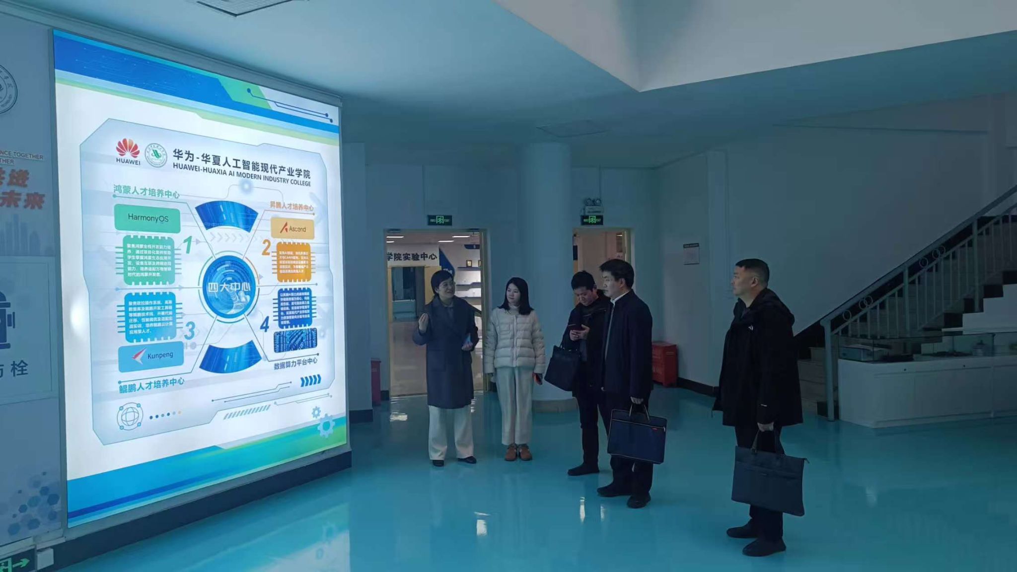 会后,在张城芳、艺术学院副院长邓婧、信息学院副院长王绪梅的陪同下,沙洋县领导一行参观了学校产学研名师工作室、艺术馆、华为-华夏人工智能现代产业学院等地。参观过程中,学校相关工作得到了来宾一行的充分肯定和一致好评。