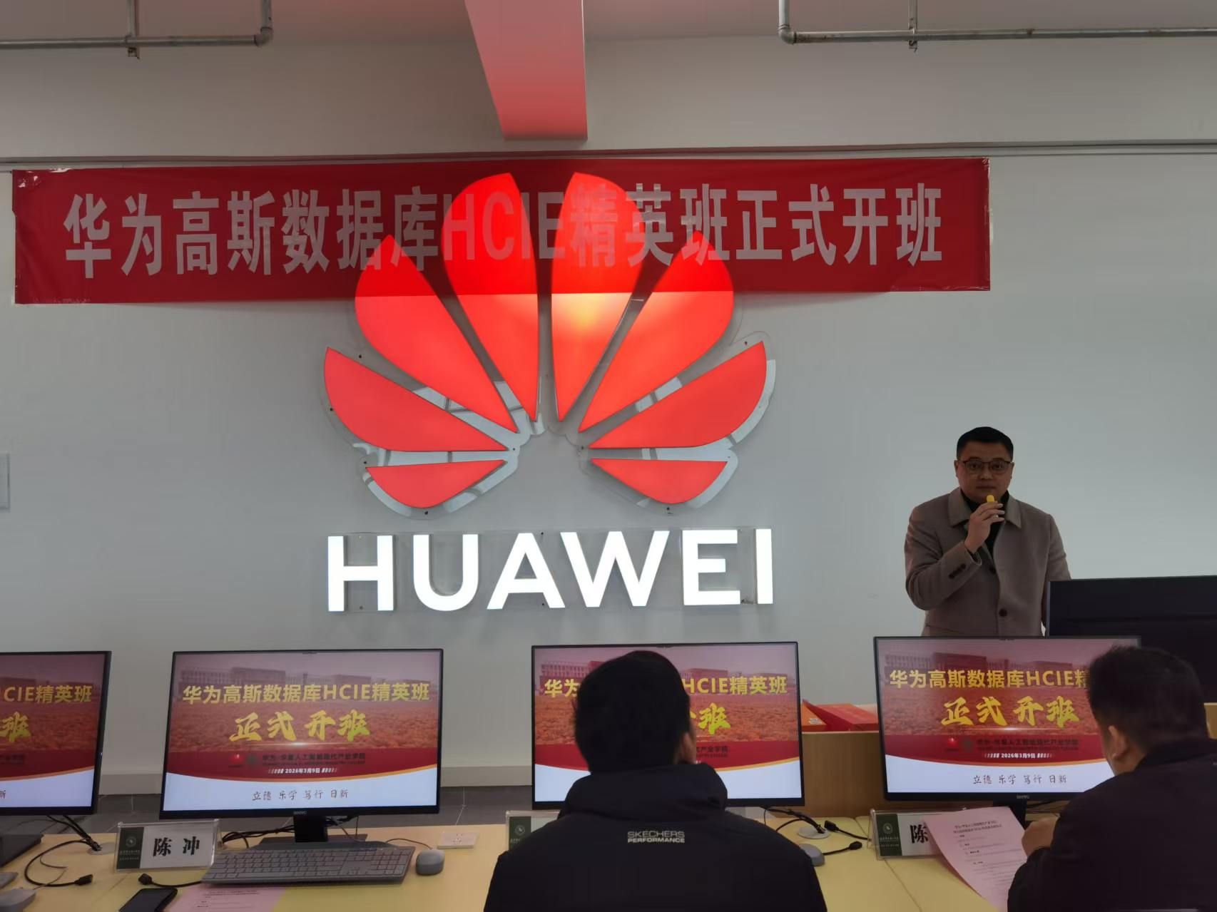 张唤在致辞中指出,华为长期致力于ICT人才培养,HCIE是其认证体系中技术等级最高的认证。此次与我校合作开设精英班,是产教融合的一次深度实践,期待学员把握机遇,成长为数据库领域的高水平人才。陈冲结合行业趋势、人才需求与技术实践,分析了高斯数据库产业的发展前景,鼓励学员以高标准要求自己,在精英班中实现技术突破与职业成长。