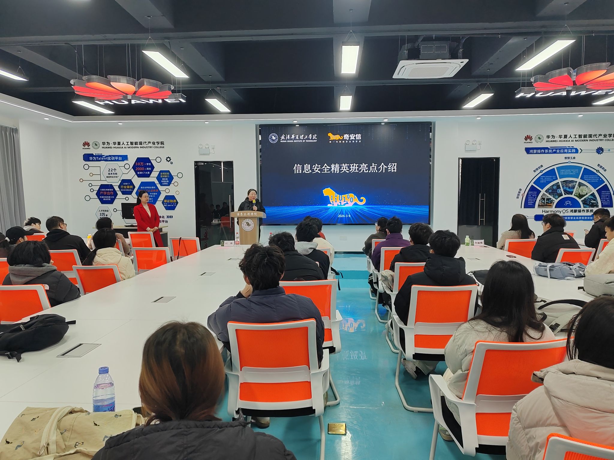 3月9日上午,我校华为-华夏人工智能现代产业学院携手奇安信科技集团,在光谷校区信息工程楼412实验室举行信息安全精英班开班仪式。校企双方领导、授课教师代表及全体精英班学员齐聚一堂,共同见证这一重要时刻,开启校企协同育人新篇章。