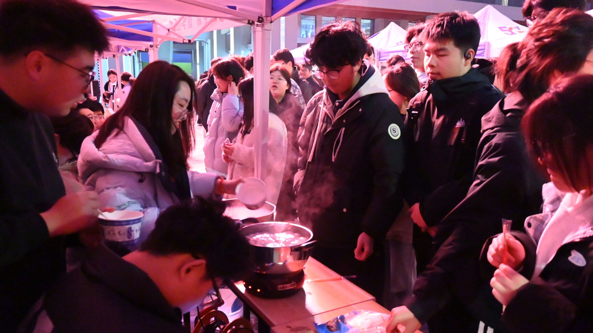 最具温情的当属共尝汤圆环节,工作人员提前备好热气腾腾的汤圆,圆润饱满的汤圆承载着团圆美满的美好祈愿,同学们围坐在一起,分享美食、畅谈心声。