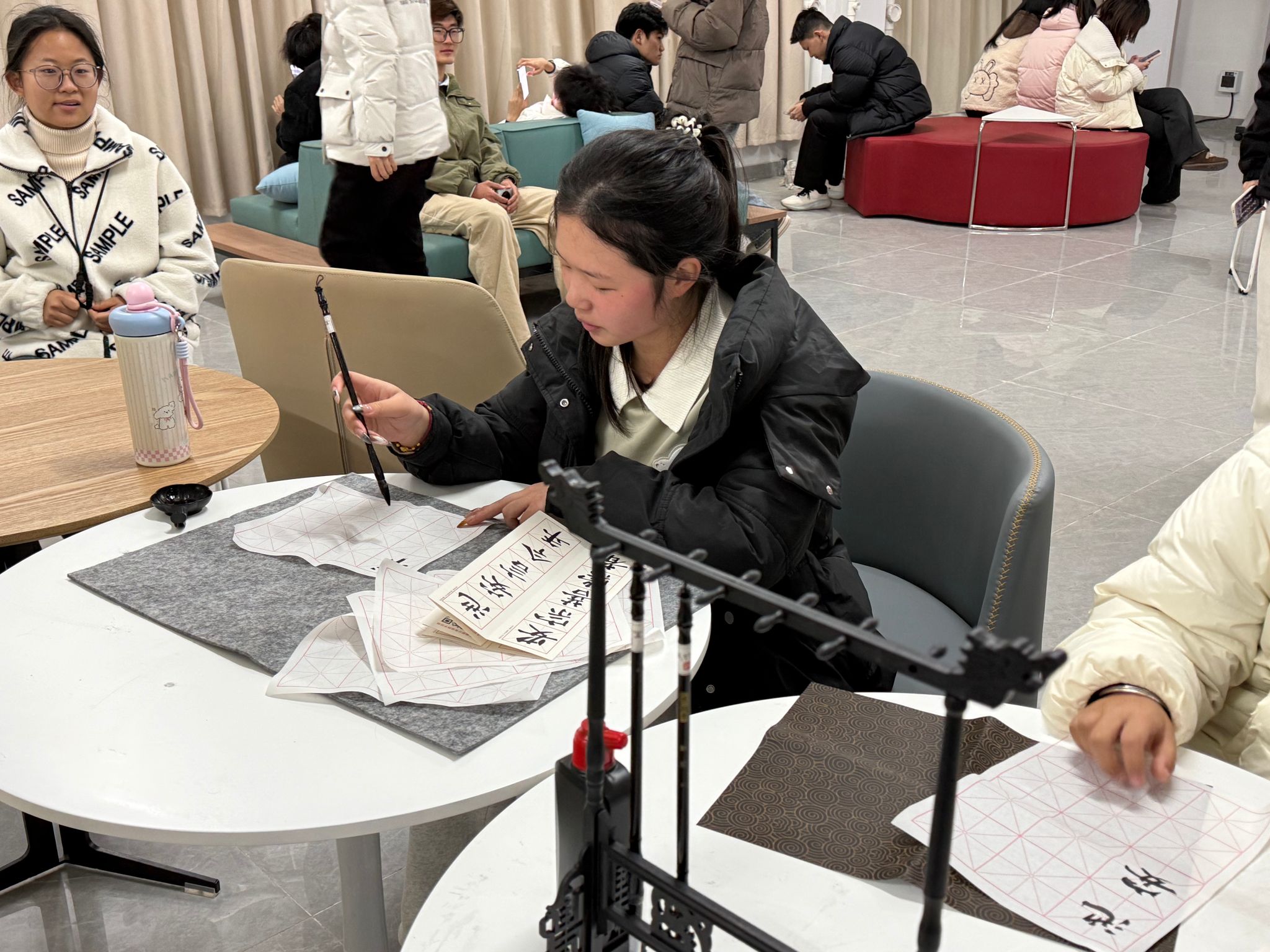 与此同时,土木建筑工程学院在三号宿舍楼活动中心打造了专属元宵分会场,为学子们带来了别样的节日欢乐。分会场里,投壶、毛笔书写元宵祝福、翻瓶子等趣味游戏轮番登场,吸引了众多同学驻足参与。学院的特色活动,将传统民俗与青春趣味巧妙融合,成为本次校园元宵游园会中一道独具特色的风景线。