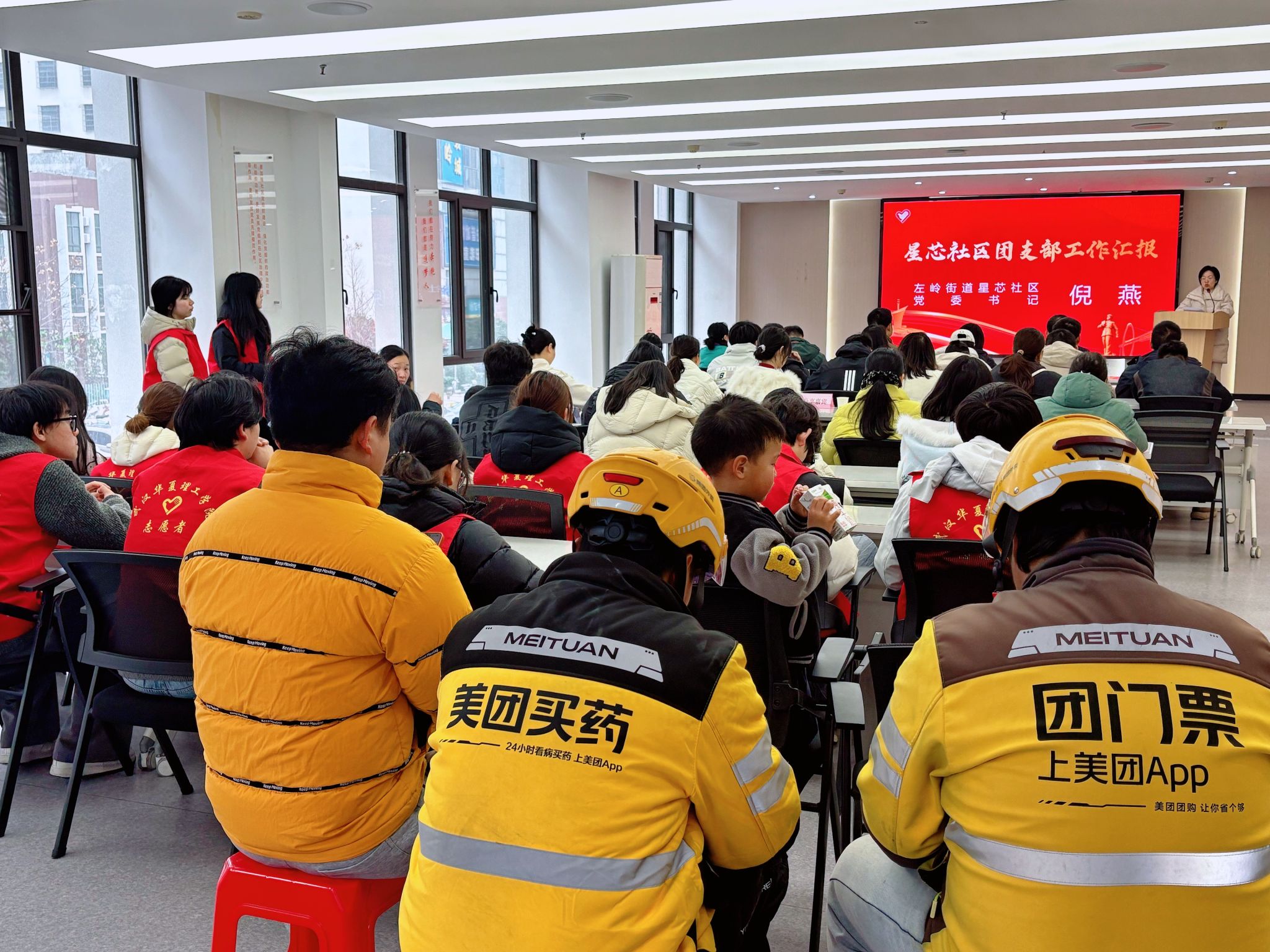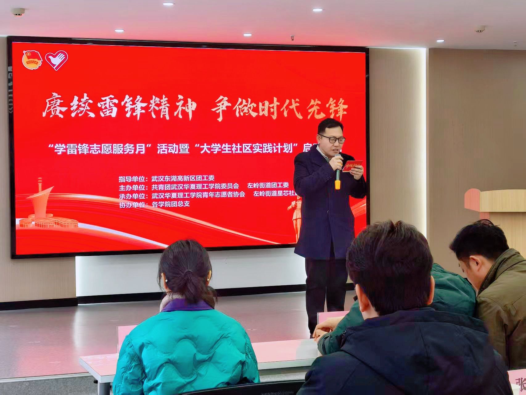3月3日,由我校团委与左岭街道团工委联合主办,校青年志愿者协会和星芯社区承办的2026年“学雷锋志愿服务月”活动暨“大学生社区实践计划”启动仪式在星芯社区举行。东湖高新区团工委、左岭街道党工委、星芯社区相关负责人及我校学工部、团委负责人出席活动。辖区新就业群体代表、居民代表及学校师生志愿者共60余人参加活动。