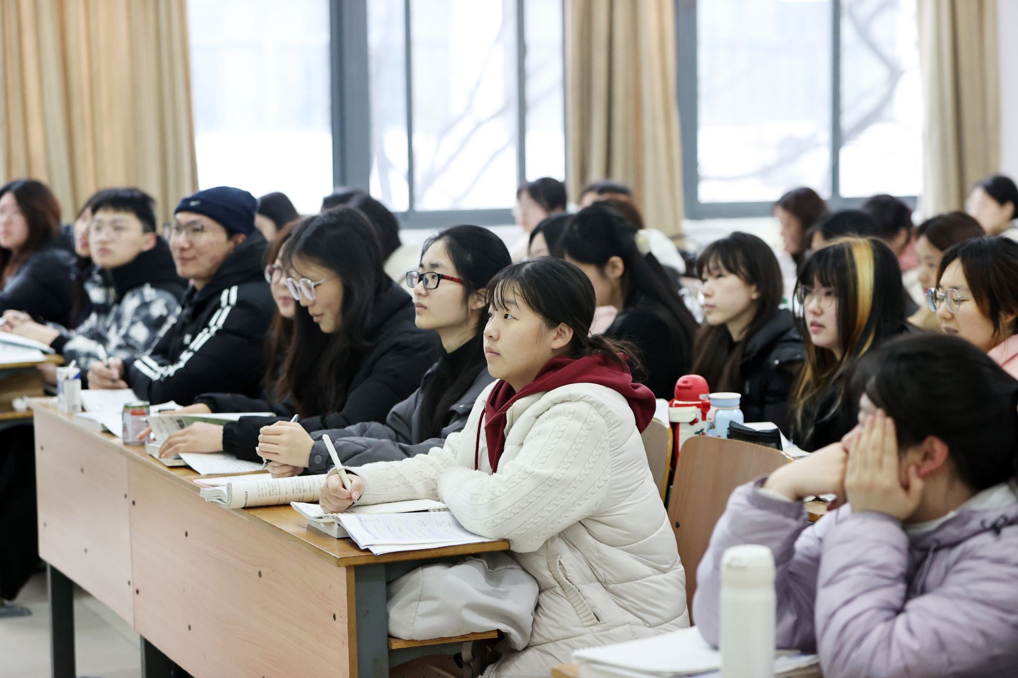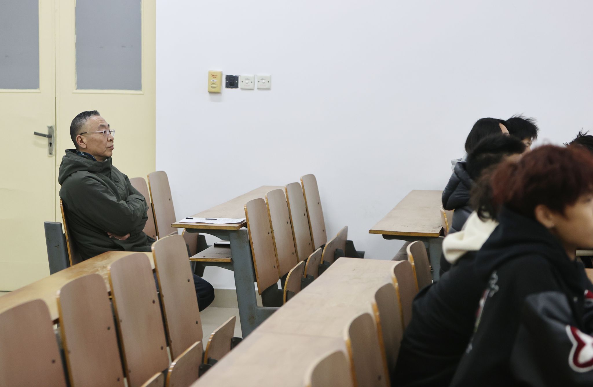 校党委书记丁德智在305教室听取孙浩老师讲授的《习近平新时代中国特色社会主义思想概论》课程。课前,丁德智仔细翻阅了课程教材和教案。听课过程中,他密切关注教师的授课内容和学生的听课状态,并认真做了记录。课后交流时,他建议老师在授课时多结合实际,用鲜活的案例吸引学生,实现师生思想上的同频共振。