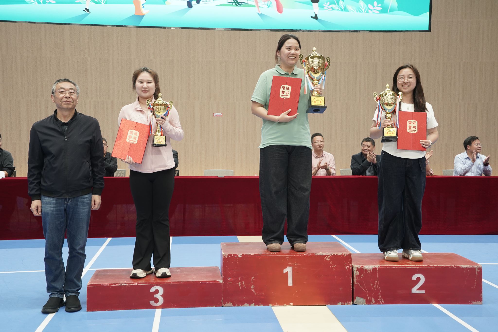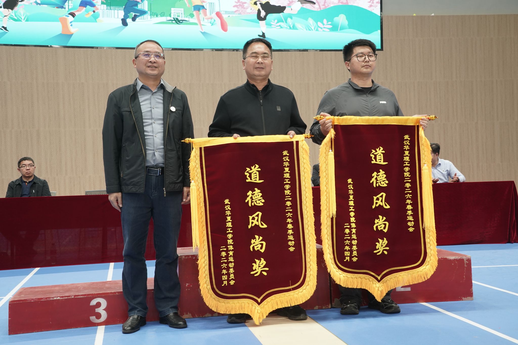 经过紧张激烈的角逐,下午五时二十分,运动会圆满完成各项赛程。商学院、信息工程学院、智能制造学院分获团体总分前三名,商学院与体育学院同获“体育道德风尚奖”。
