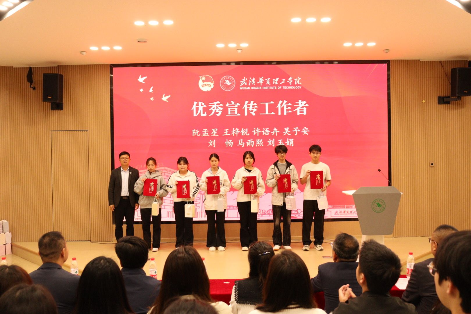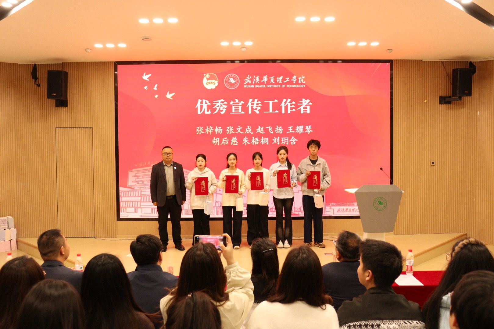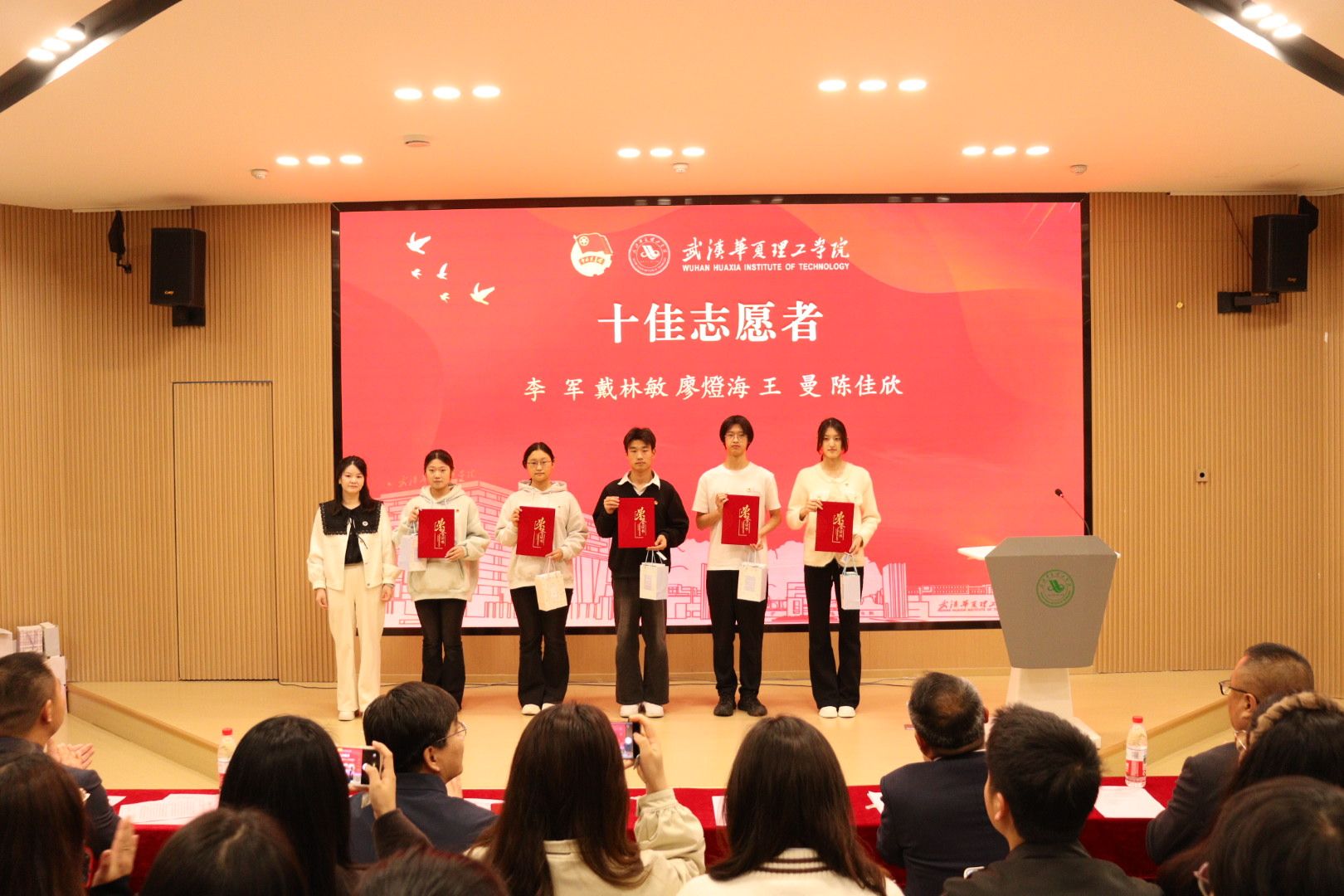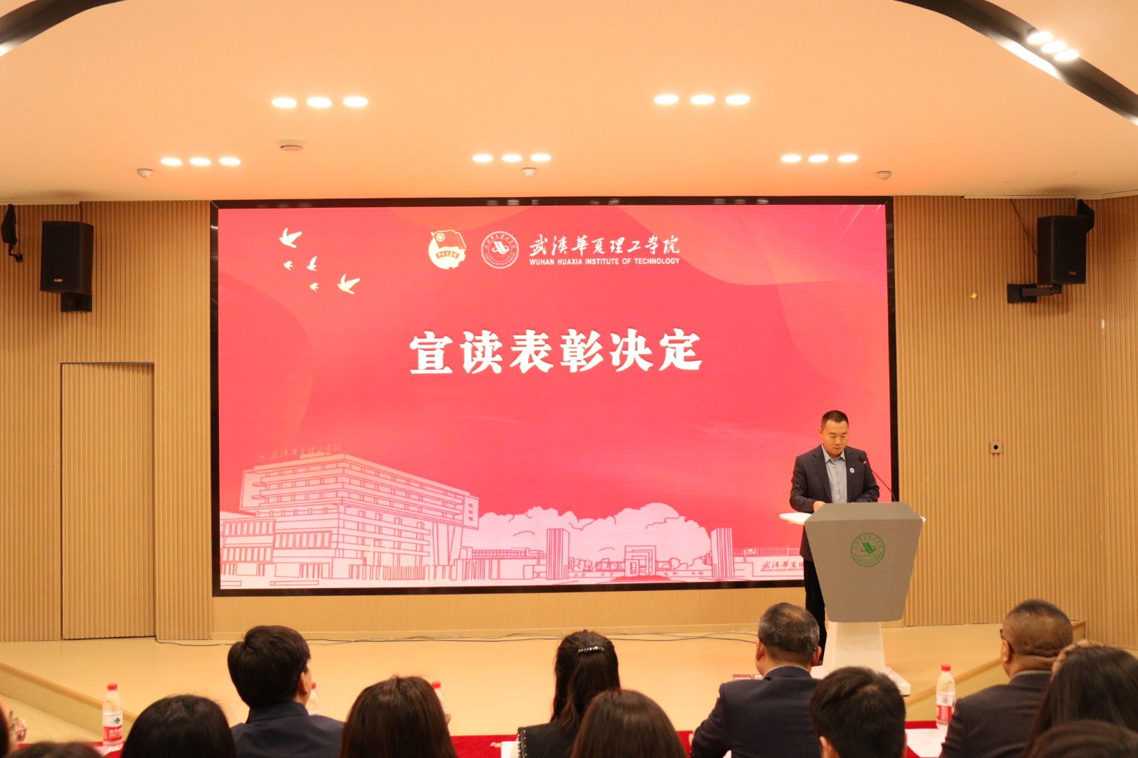 4月22日晚,我校在梧桐湖校区教学楼一楼多功能报告厅举行2026梁子湖半程马拉松志愿服务总结表彰大会。副校长、梧桐湖校区管委会主任胡水兵,梧桐湖校区管委会副主任项金辉、张城芳、黄程,管委会综合办公室主任张勇、副主任孙华,学生服务中心主任郝志康,校团委副书记史贵鹏,全体辅导员及志愿者代表参加大会。