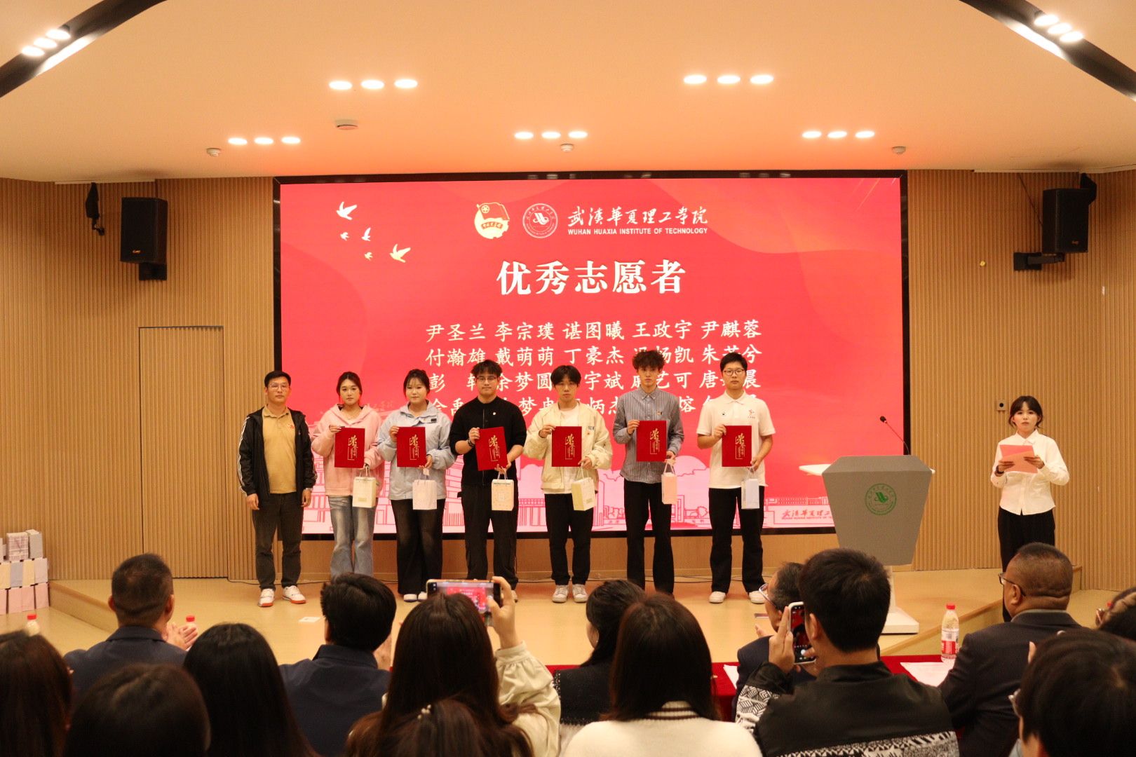黄程宣读志愿服务表彰决定,对表现突出的优秀志愿者予以表彰。与会领导为获奖志愿者代表颁发荣誉证书。